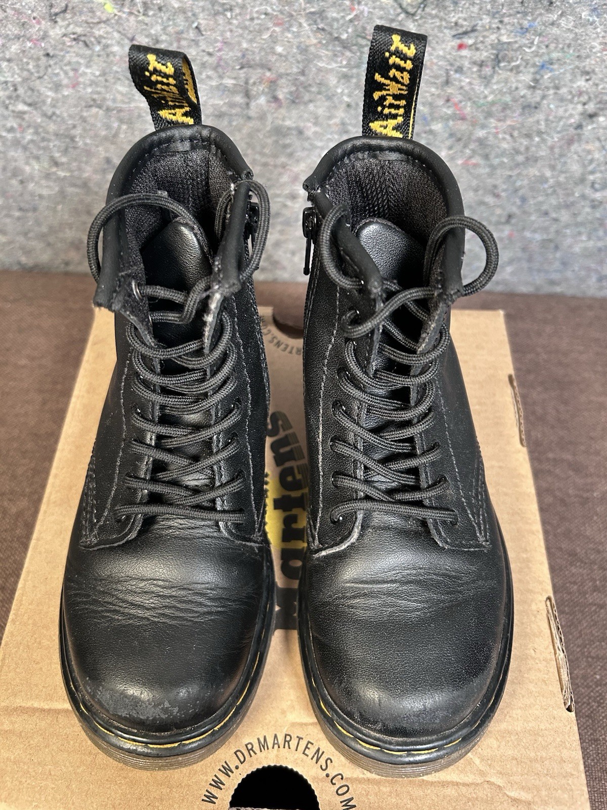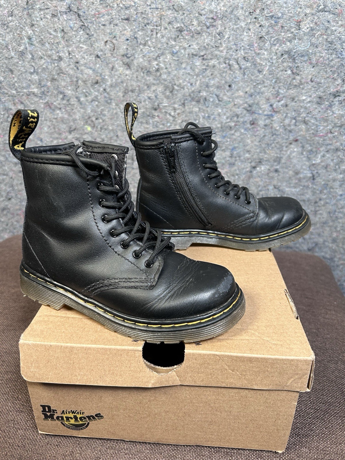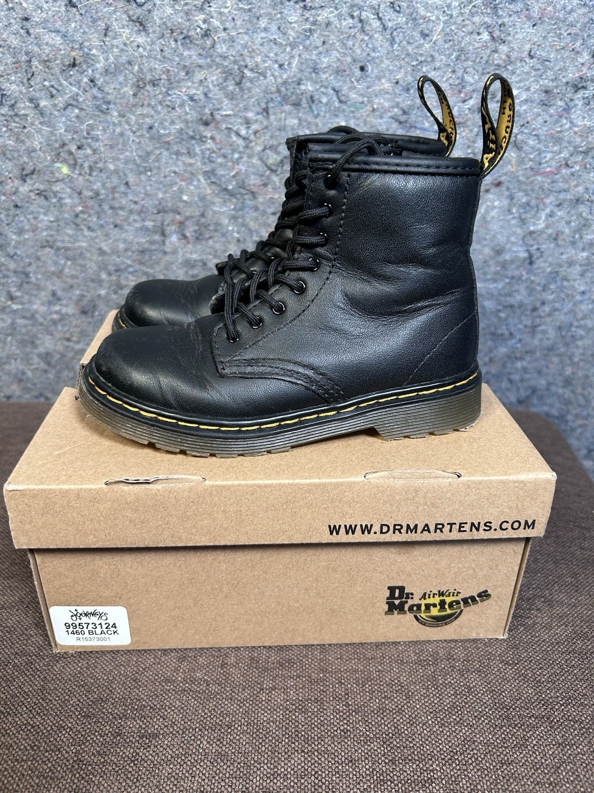 как выглядит Doc Dr Martens Boots 1460T Black Leather Combat Unisex Kids Size 10 Side Zip фото