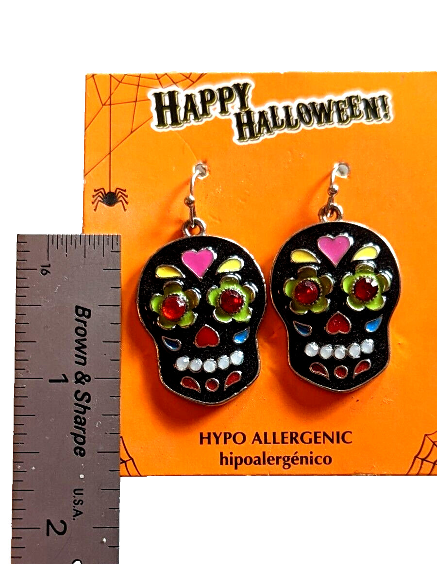 Day Of The Dead Skull Earrings - Hypo Allergenic - Halloween Rhinestone Earrings