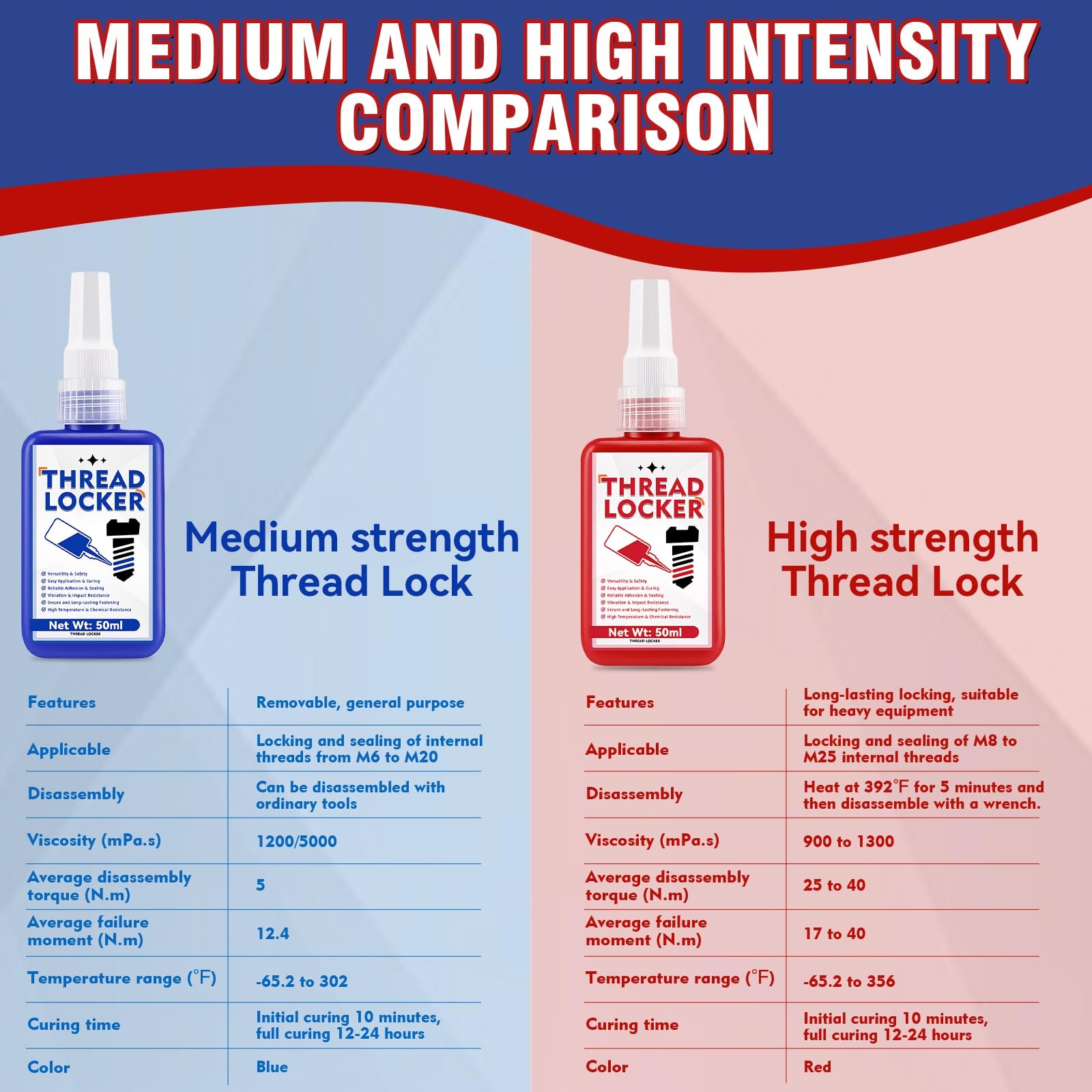 Thread Lock Blue and Red, 50ml 2 Lock Tight Threadlocker Medium High Strength...