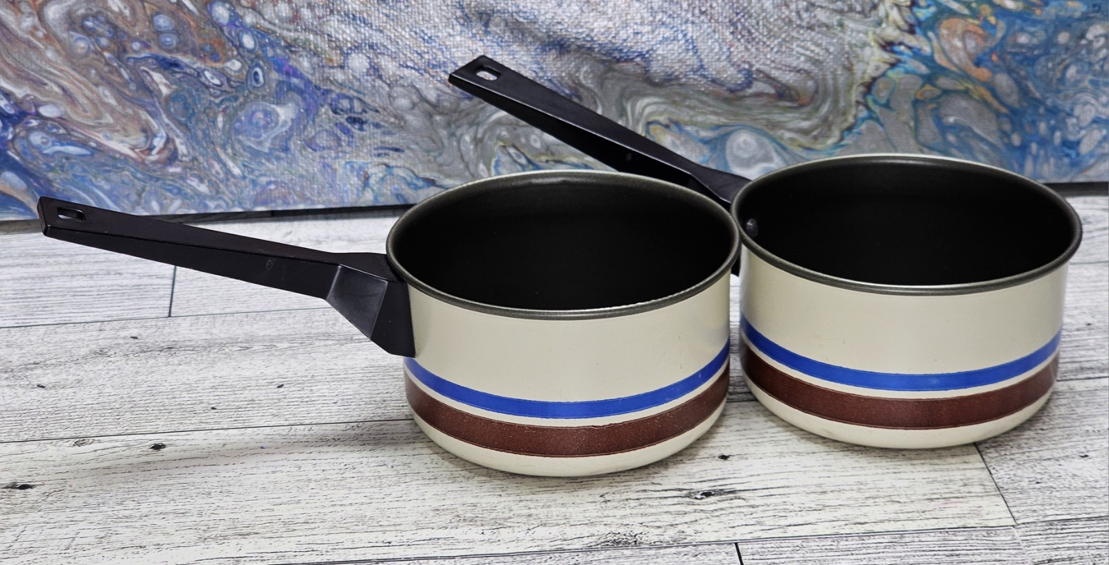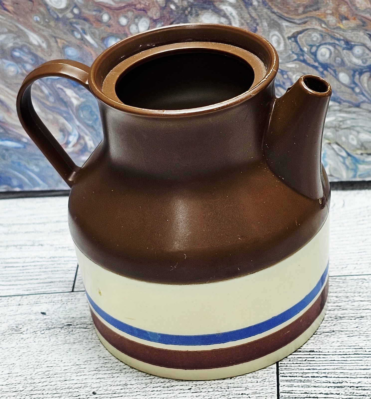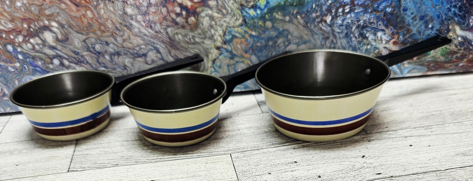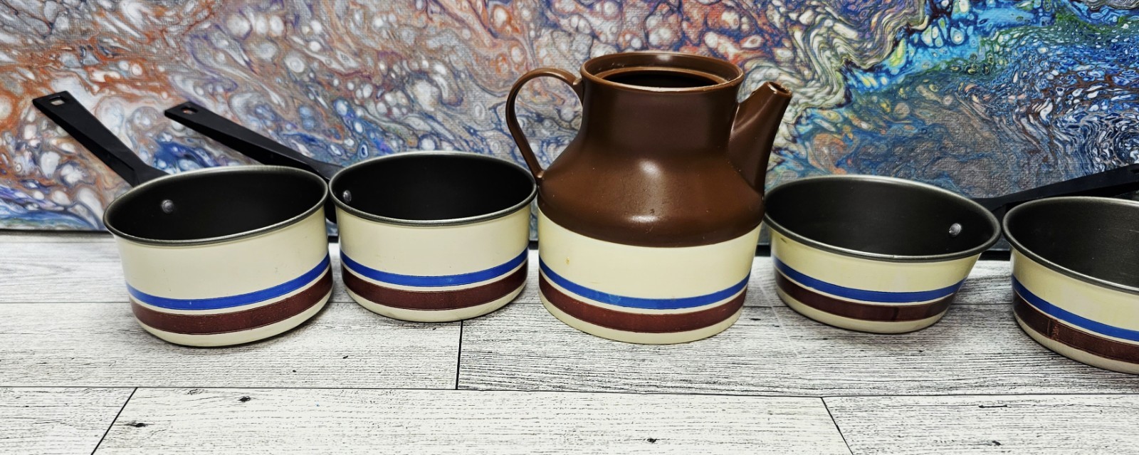 как выглядит Vintage Chilton Childs Toy Set Pots and Pan Blue Brown Tan w/ Pitcher - 6 Pieces фото