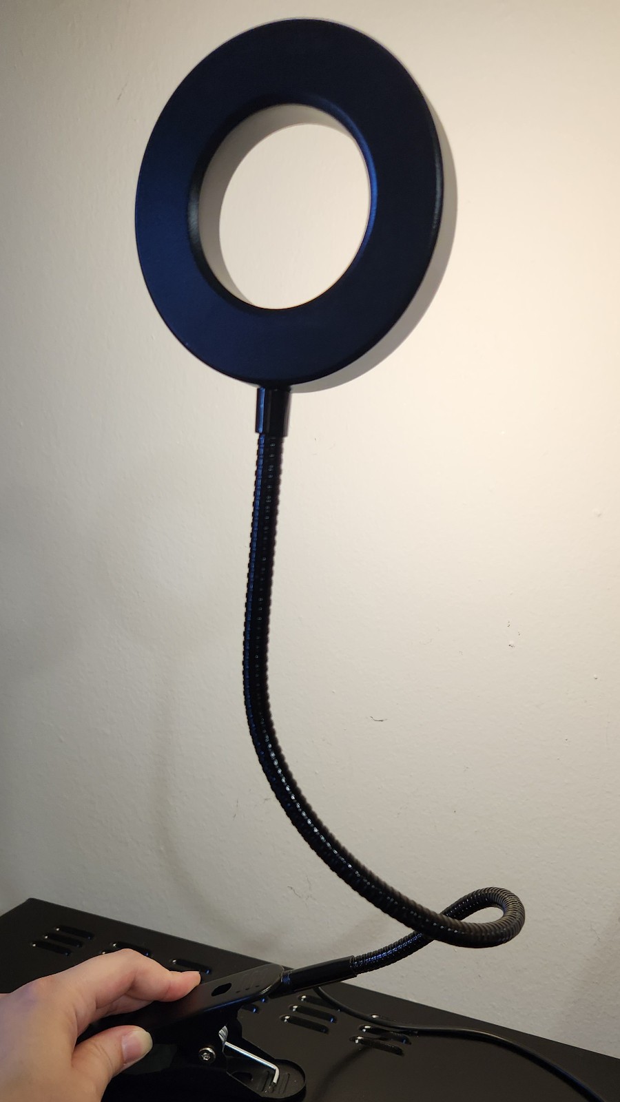 как выглядит Adjustable LED mini ring light - warm, cool or bright white- used excellent фото