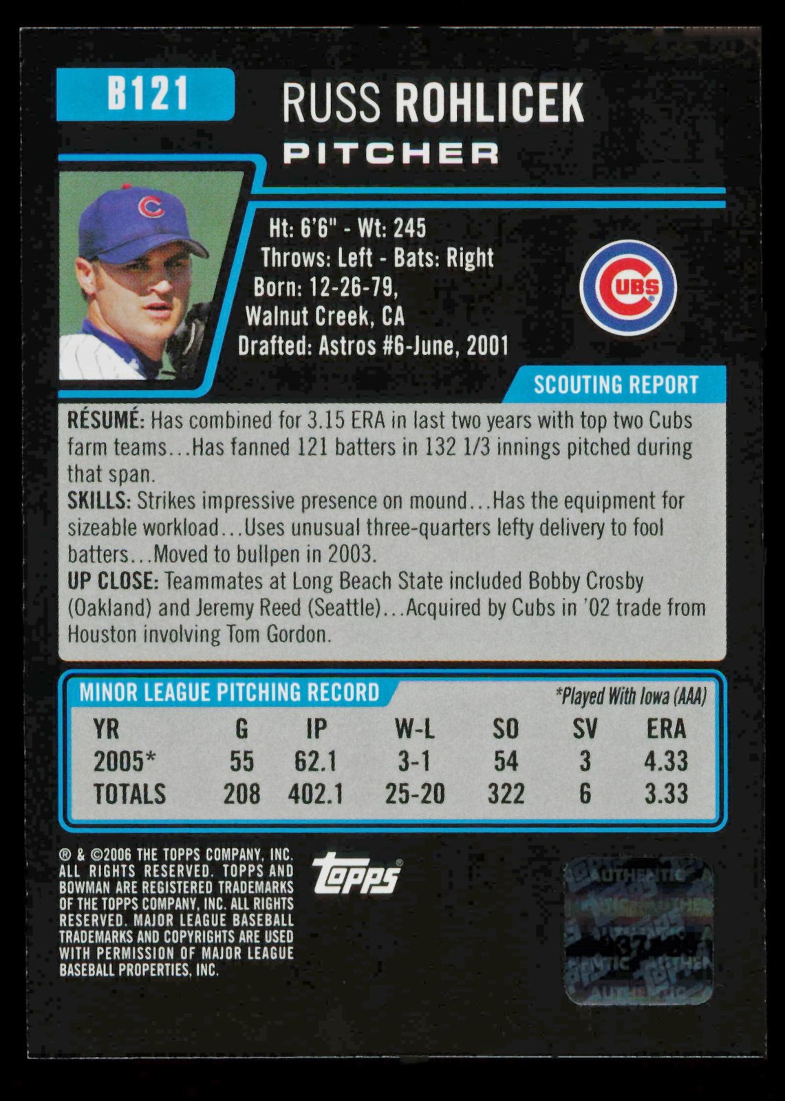 • 2006 Bowman B121 Russ Rohlicek Auto Prospects Chicago Cubs