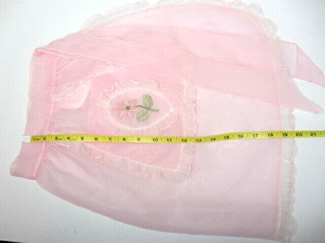как выглядит Apron Half Sheer Pink Floral Daisy 50s Tie Back Pockets Ruffle Trim Vintage фото