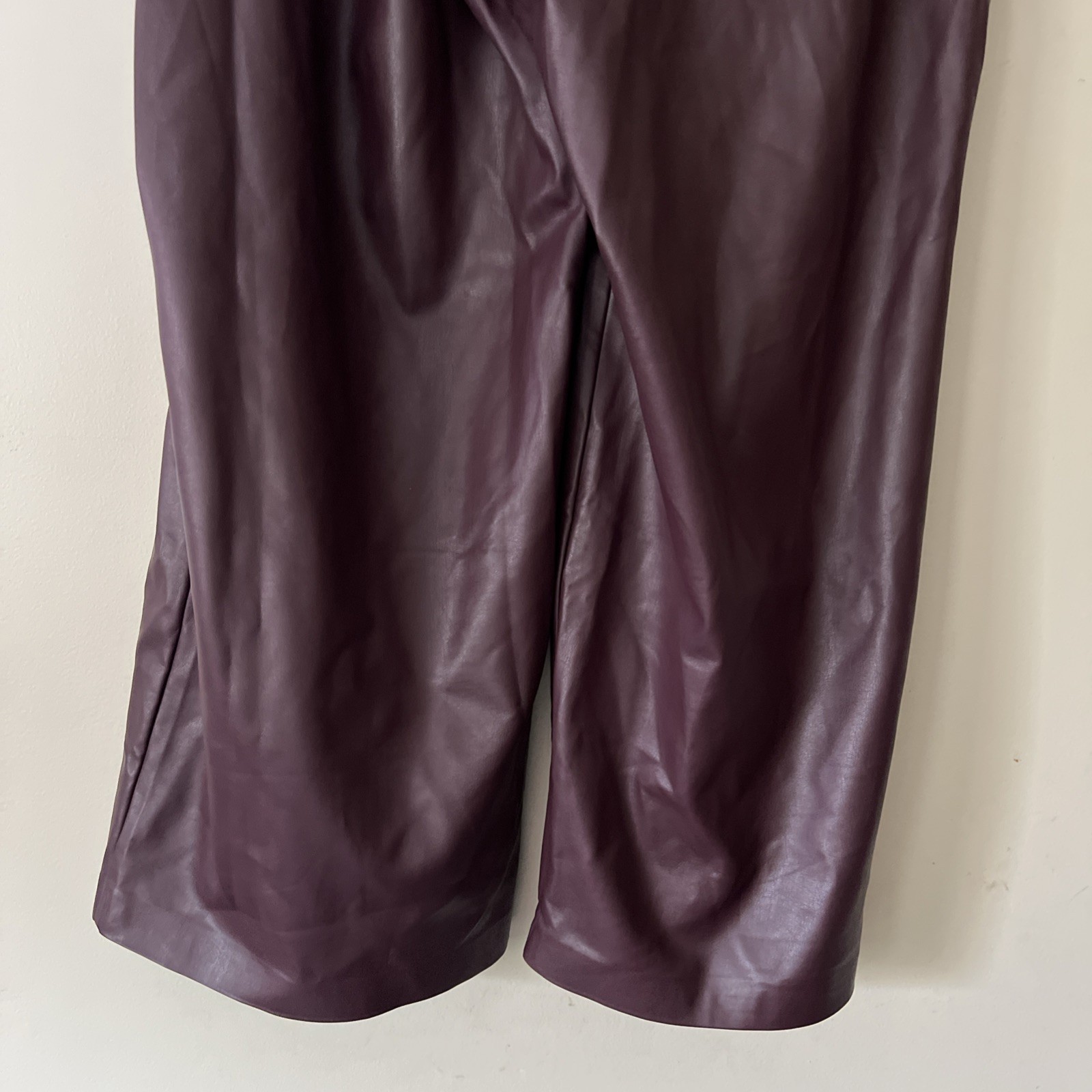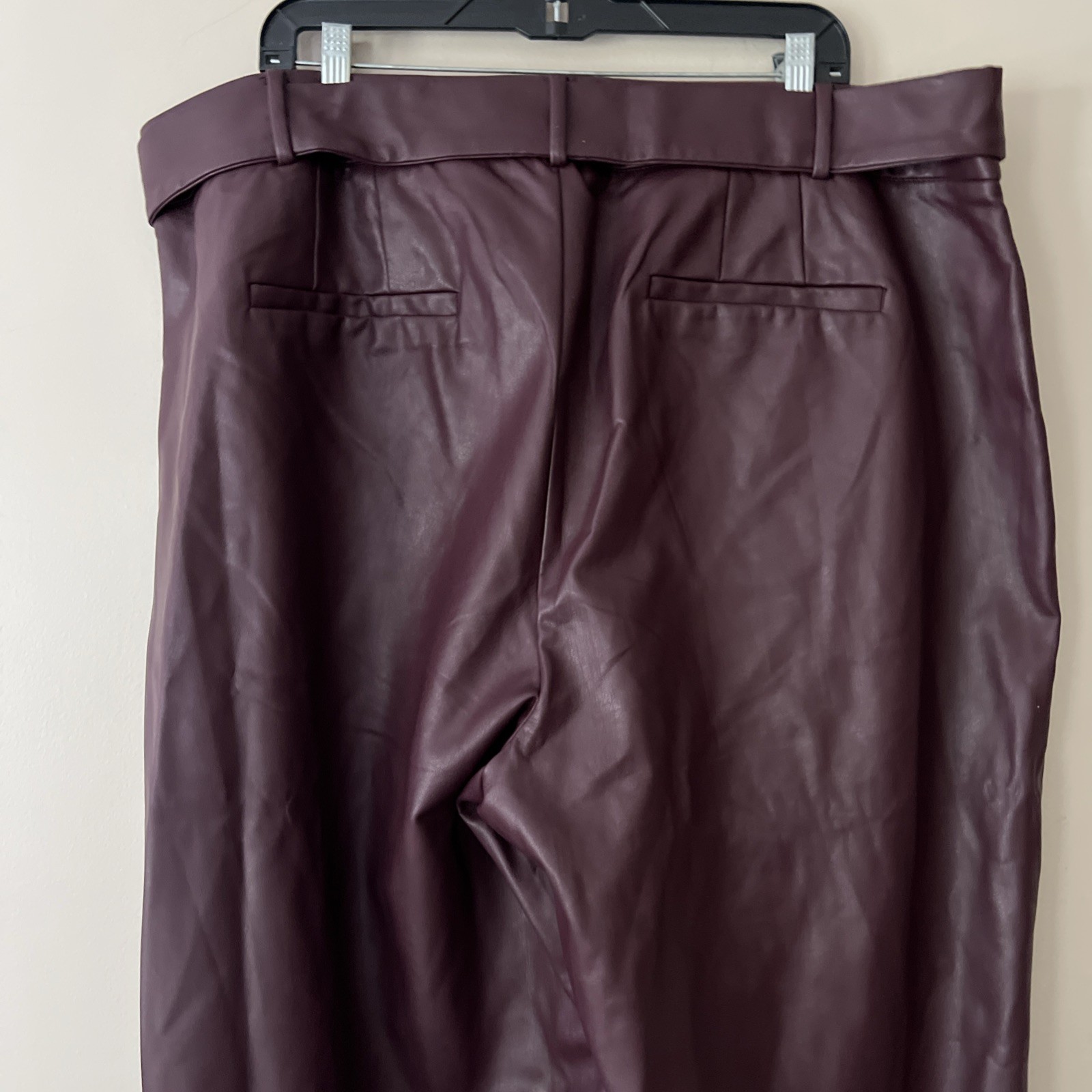 как выглядит Eloquii Women Plus Size 22 Faux Leather Wide-Leg Pants High Waist Belted Maroon фото