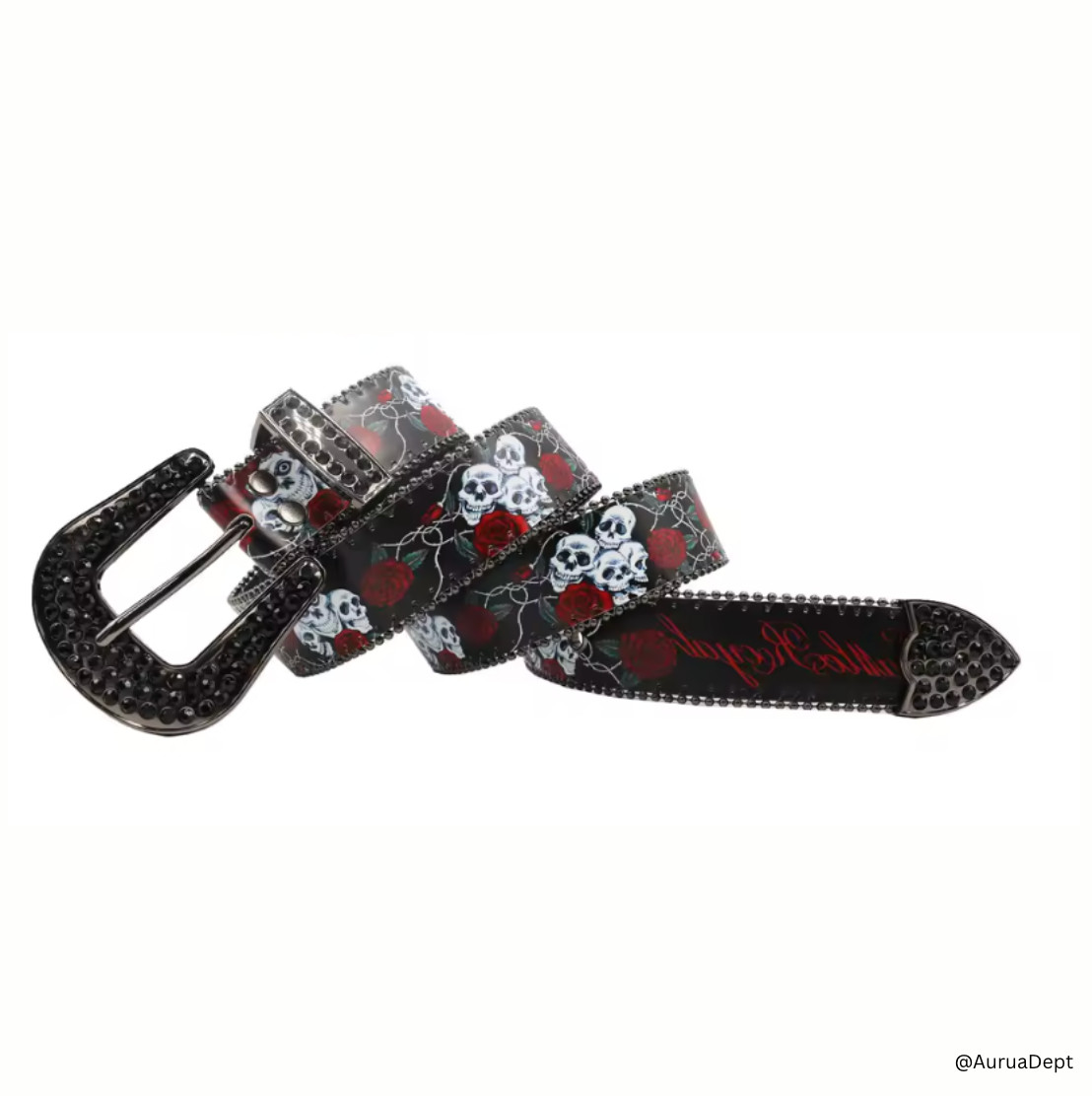 Skull Rose Rhinestone Belt Punk Gothic Rock Bling Western Style Men Women