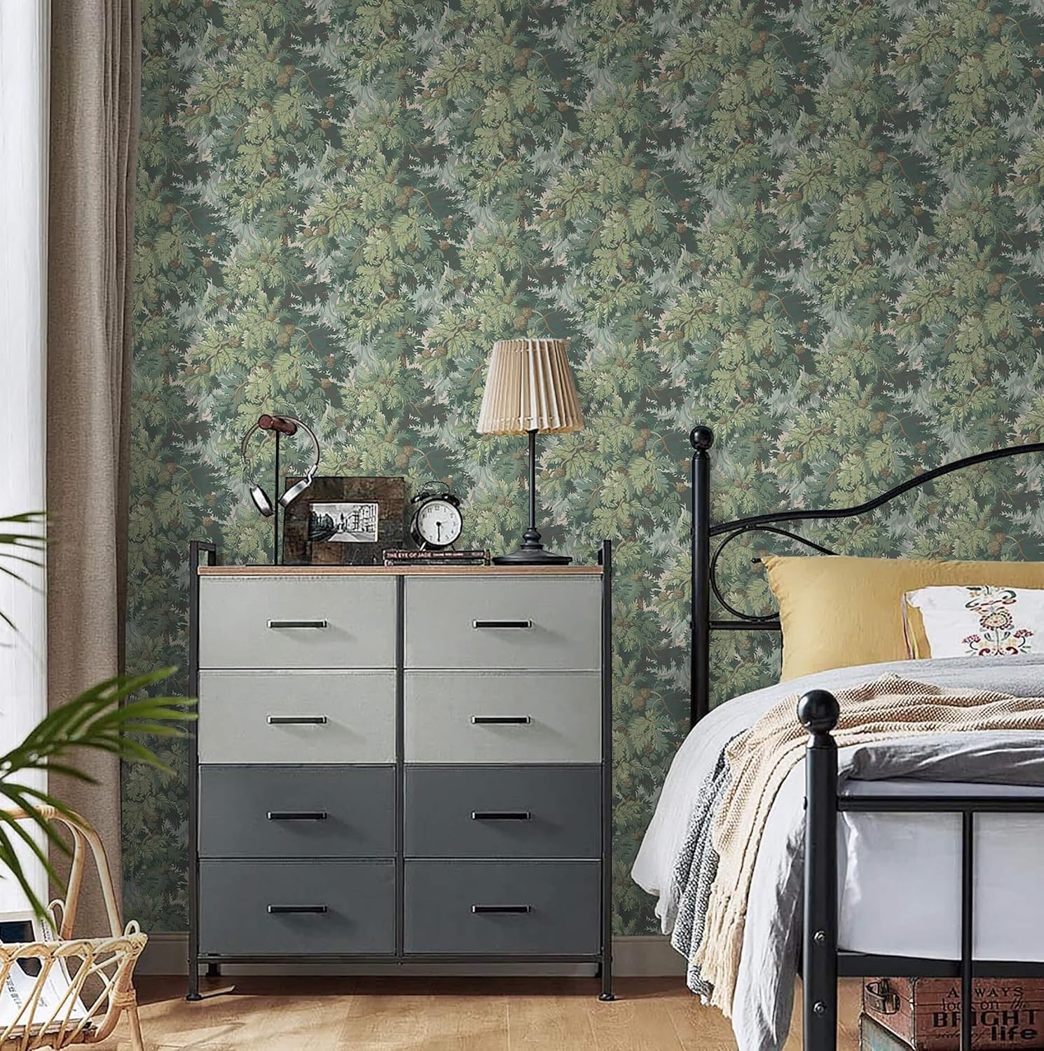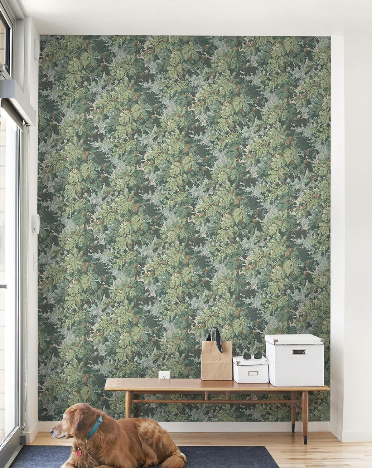 как выглядит Heroad Dark Green Peel and Stick Wallpaper Botanical Contact Paper 17.3