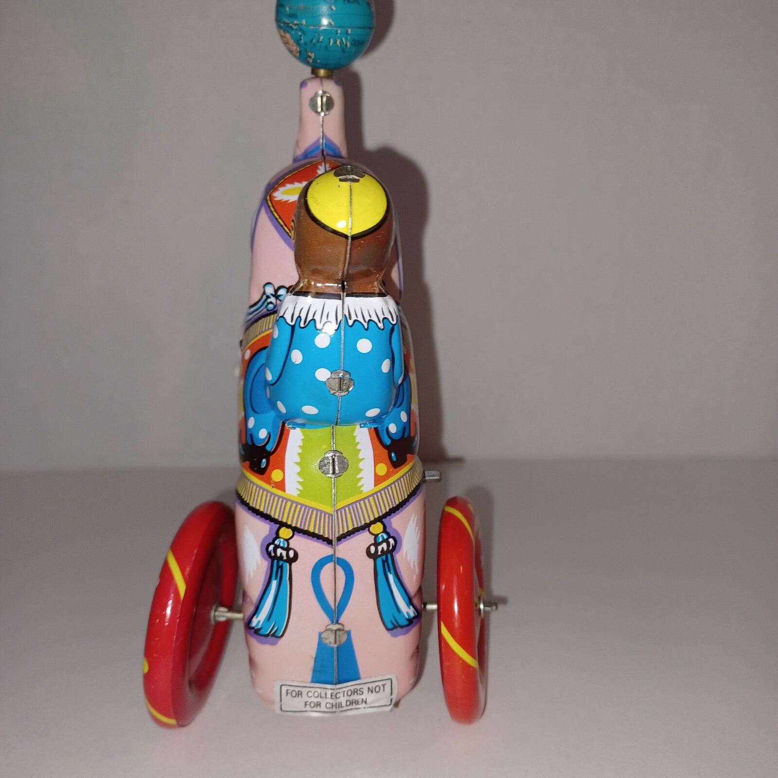 Vintage Circus Elephant with Monkey Wind Up Toy Missing Key and Plastic Bit