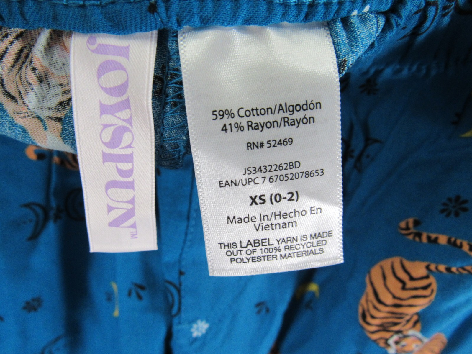как выглядит New Joy Spun Sleep Short Size XS 0 2 Blue Tigers Elastic Waist Pockets фото