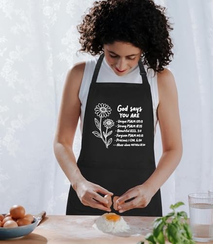 Funny Aprons for Women with 2 Pockets, Adjustable Kitchen Apron Black-god Says