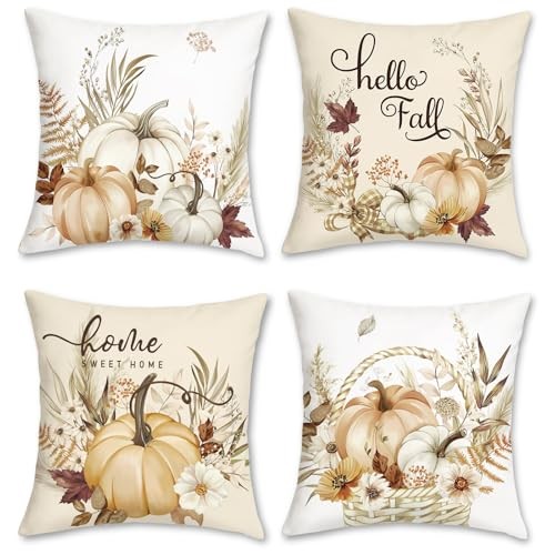 Hello Fall Pumpkin Throw Pillow Covers 18 x 18 18 x 18 Pack of 4 Pumpkin-1