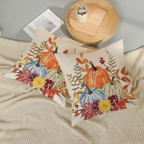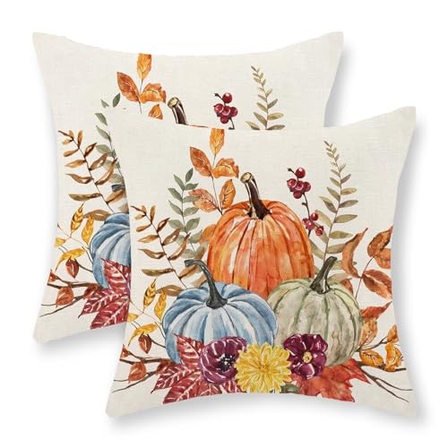 Fall Pillow Covers 18x18 Set of 2 18 x 18 Pack of 2 Orange Blue Pumpkin