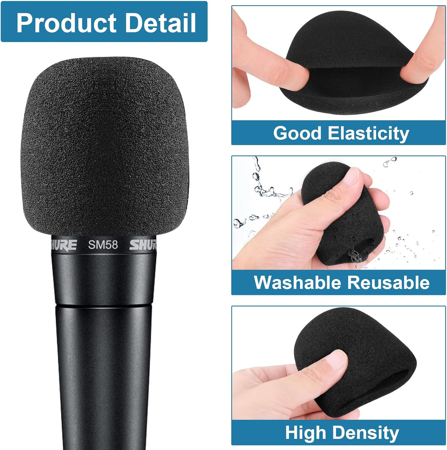 как выглядит Windscreen for SM58, 6Pack Microphone Pop Filter Foam Cover for Shure SM58 Sm48, фото