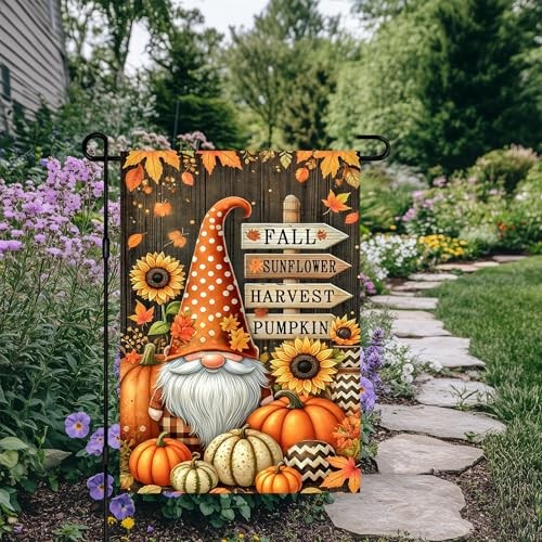 Fall Garden Flag 12x18 Inch Double Sided Gnome Flags Pumpkin Pumpkin Dwarf
