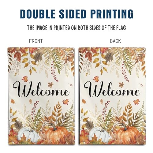 Fall Welcome Garden Flag 12x18 Inch Double Sided Autumn Fall Watercolor Pumpkin