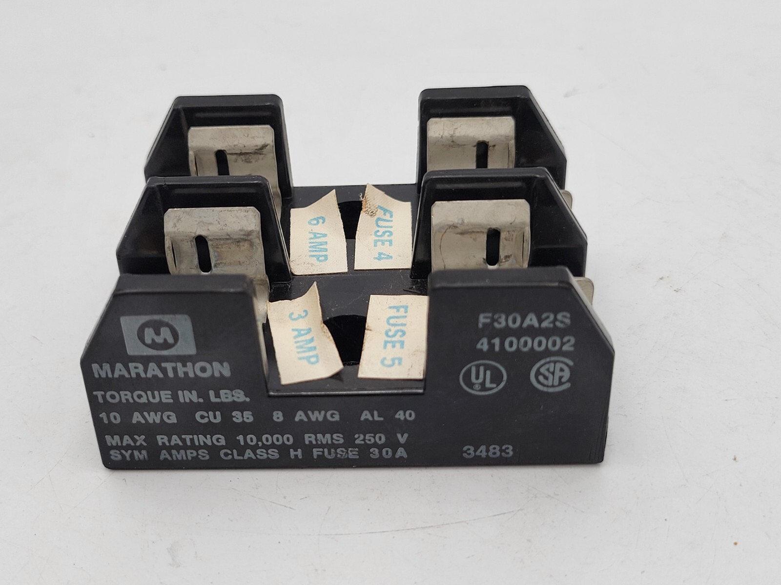 Marathon F30A2S Fuse Holder Class H Panel Mount 10 AWG 30 AMP 250 Volt 2-Pole