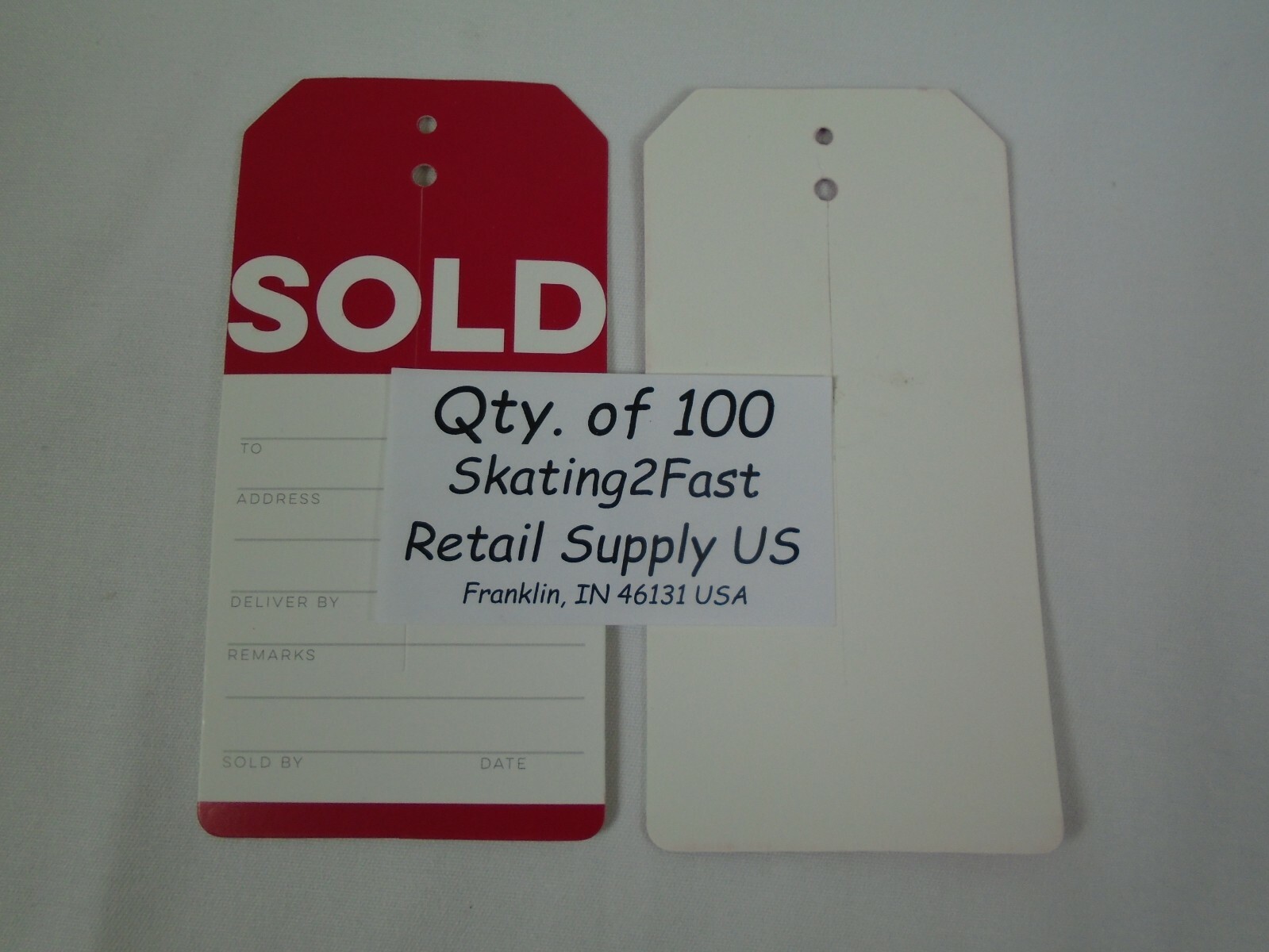 Qty. 100 Sold Tags with Slit Merchandise Tags Red / White