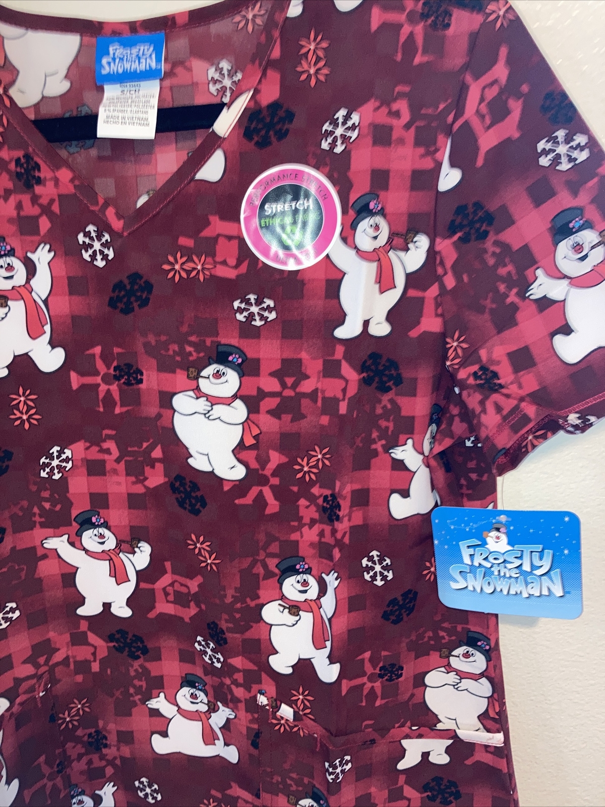 Womens Medical Scrub Top Size Small 'Frosty the Snowman' Shirt NWT