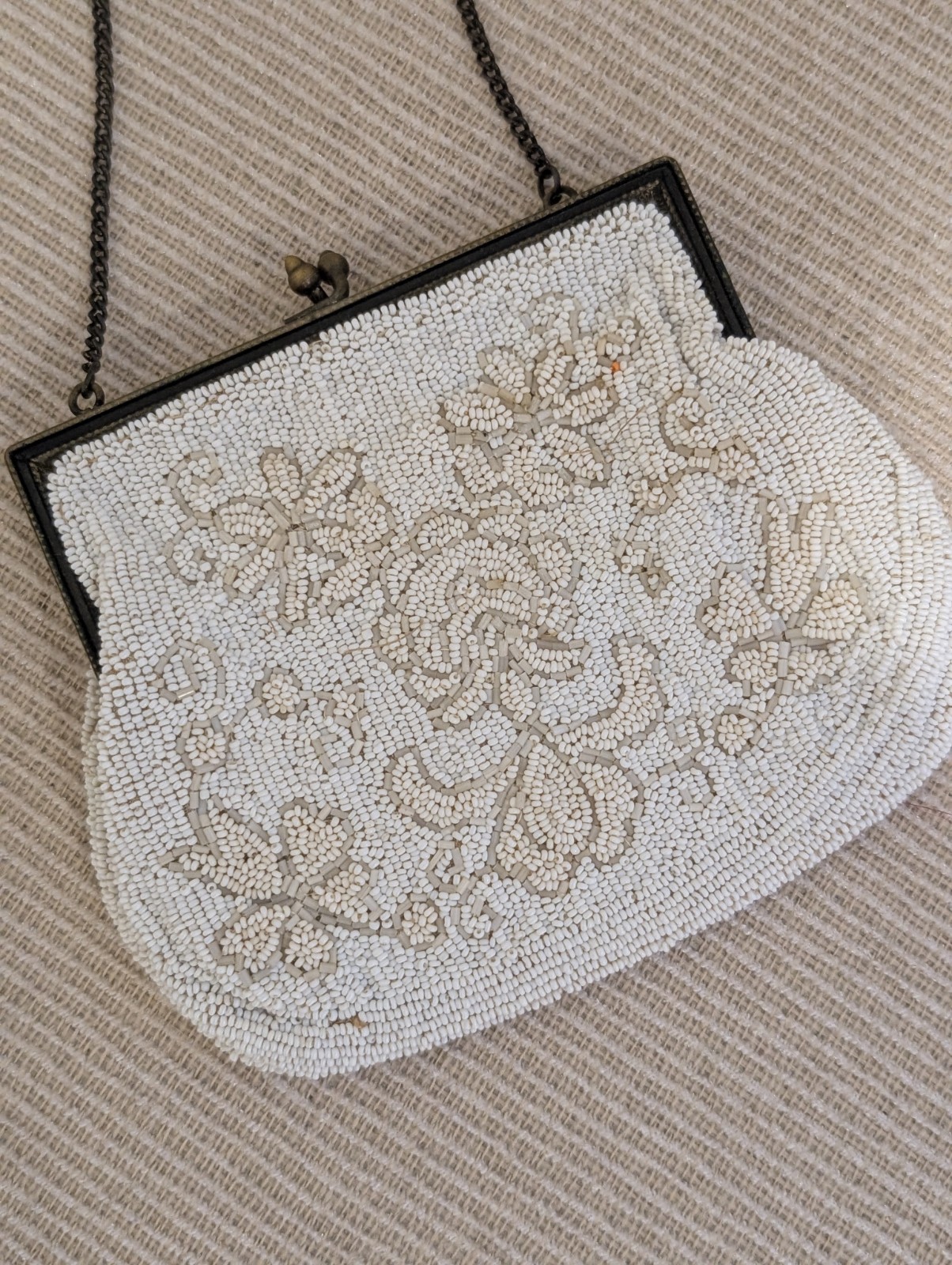 Vintage Antique Cream Ivory Mini Beaded Evening Bag Purse Clutch With Mirror