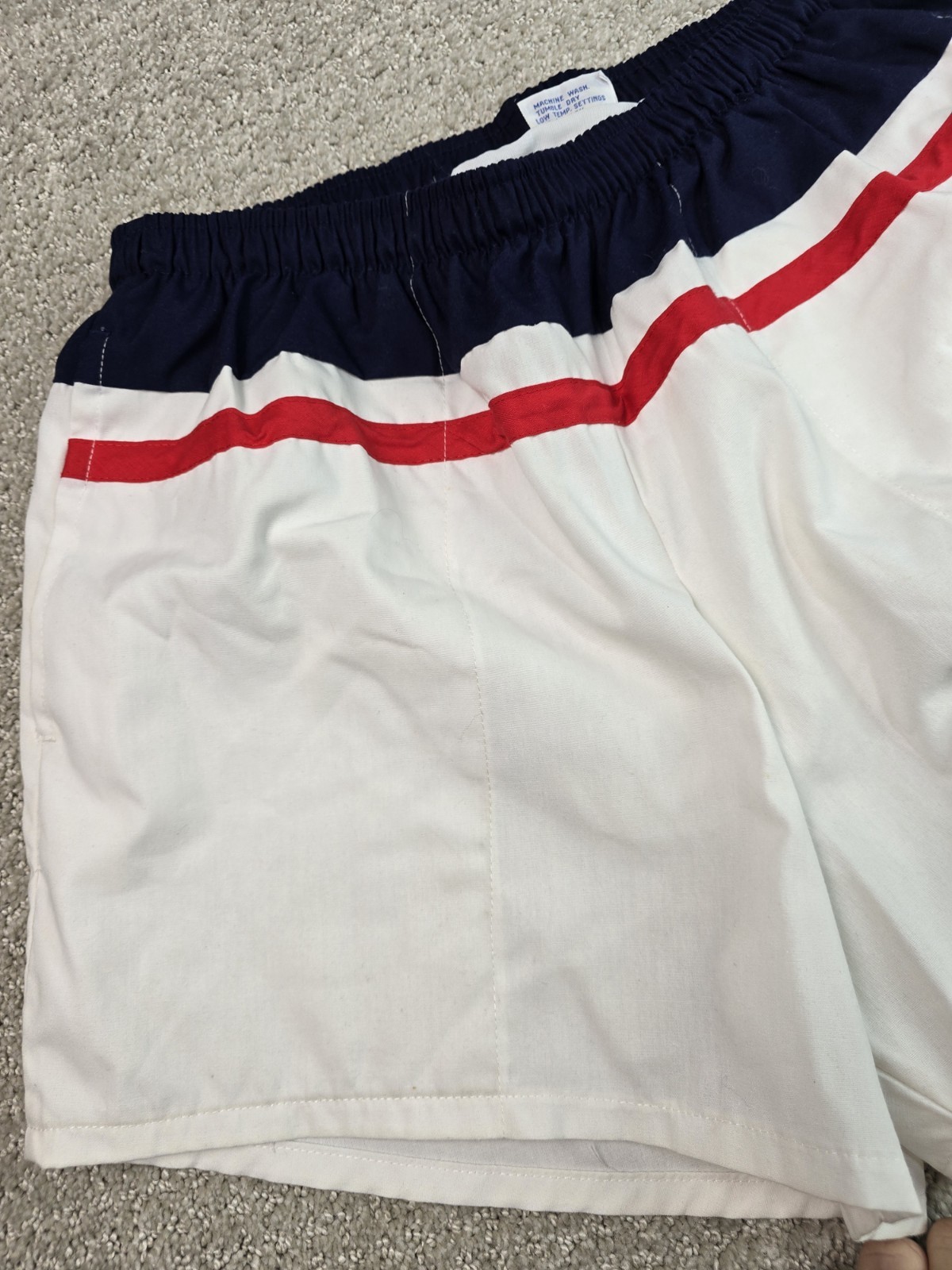как выглядит Vintage Look M Endless Summer 80s Swim Shorts Trunks White Red Blue Stripe Retro фото