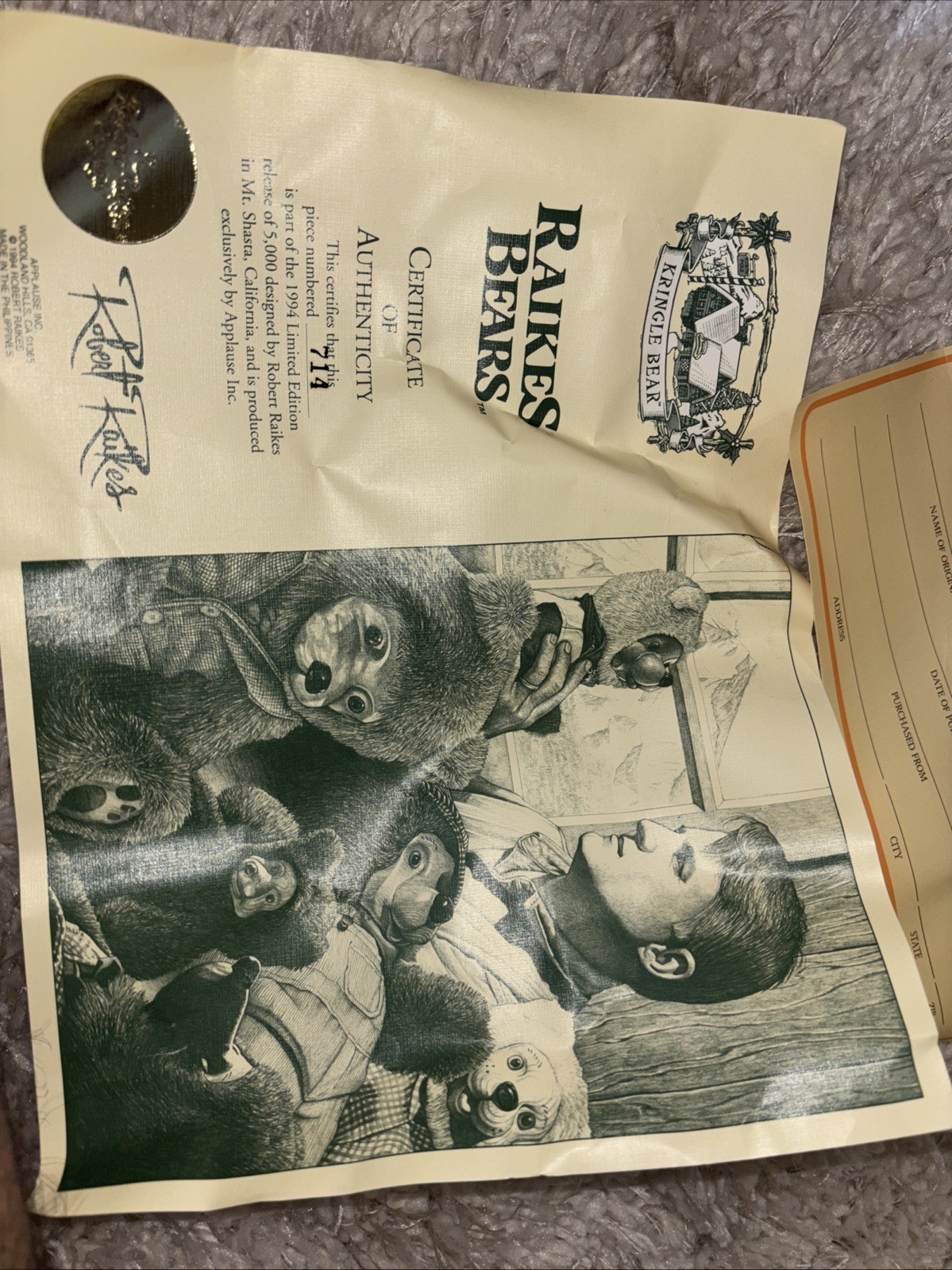 как выглядит Santa Bear -RARE-1994 Robert Raikes "KRINGLE" Limited Edition 714 Out Of 5000 фото