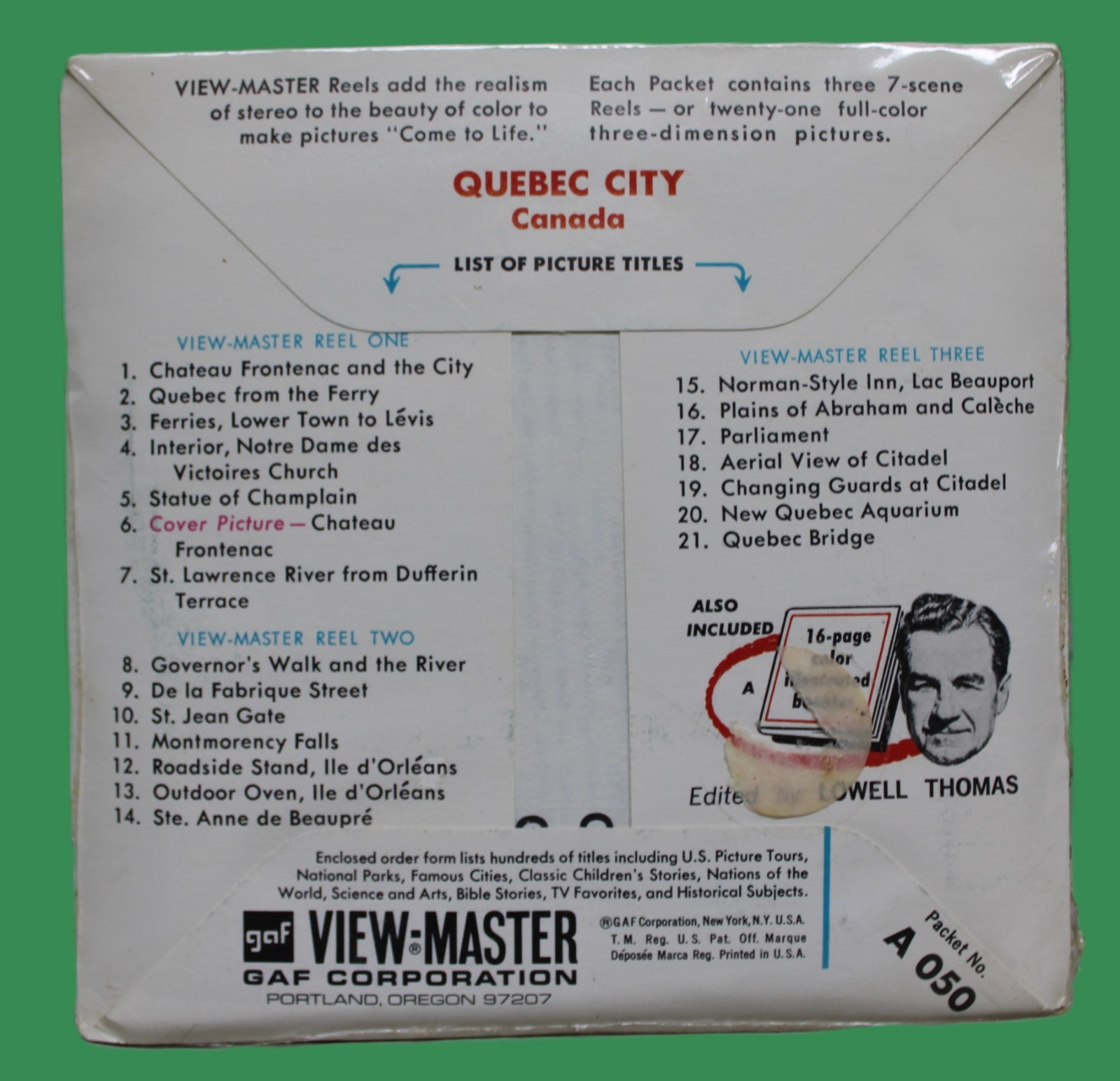 • GAF VIEW MASTER REELS A-050 QUEBEC CITY CANADIAN SIDE 1962 NEVER OPENED