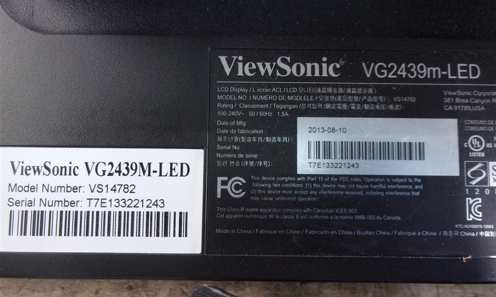 как выглядит ViewSonic VG2439m-LED VS14782 24" LCD Monitor DisplayPort VGA DVI SEE NOTES фото