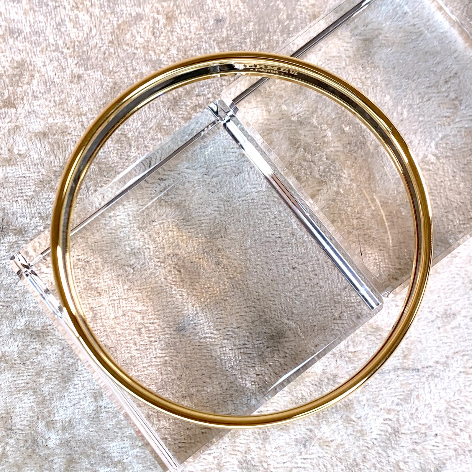 как выглядит Hermes Paris Bangle Bracelet Pink Enamel On the Beach Gold Rim 65 with Box фото