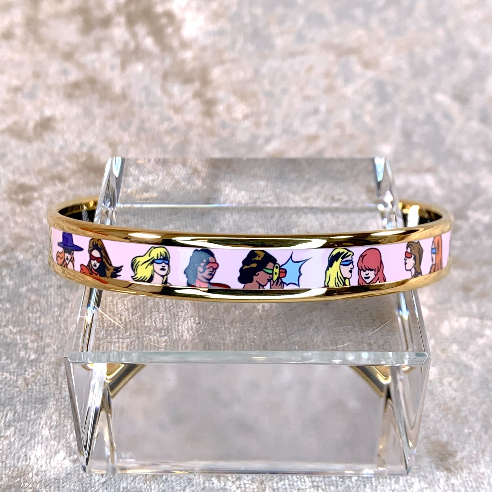 Hermes Paris Bangle Bracelet Pink Enamel On the Beach Gold Rim 65 with Box