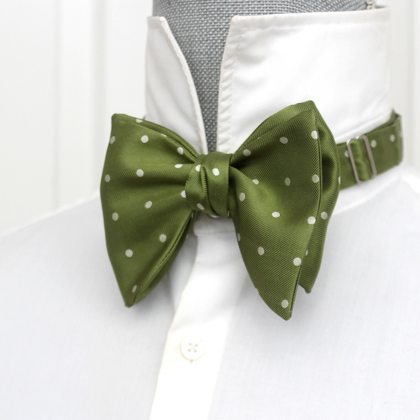 Men's Self-tied Big Butterfly Bow Tie Green Polka Dot Silk S544