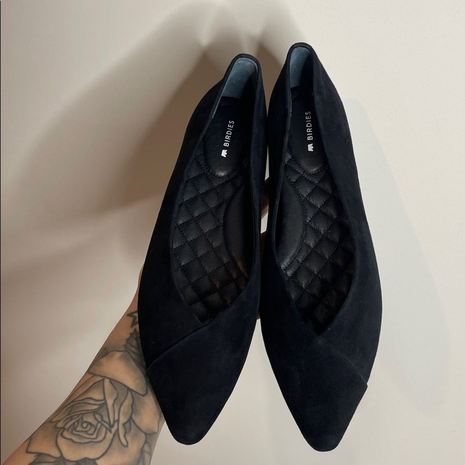 как выглядит Birdies Women s Goldfinch Black Suede Pointed Toe Flats Size 9.5 NWOB фото