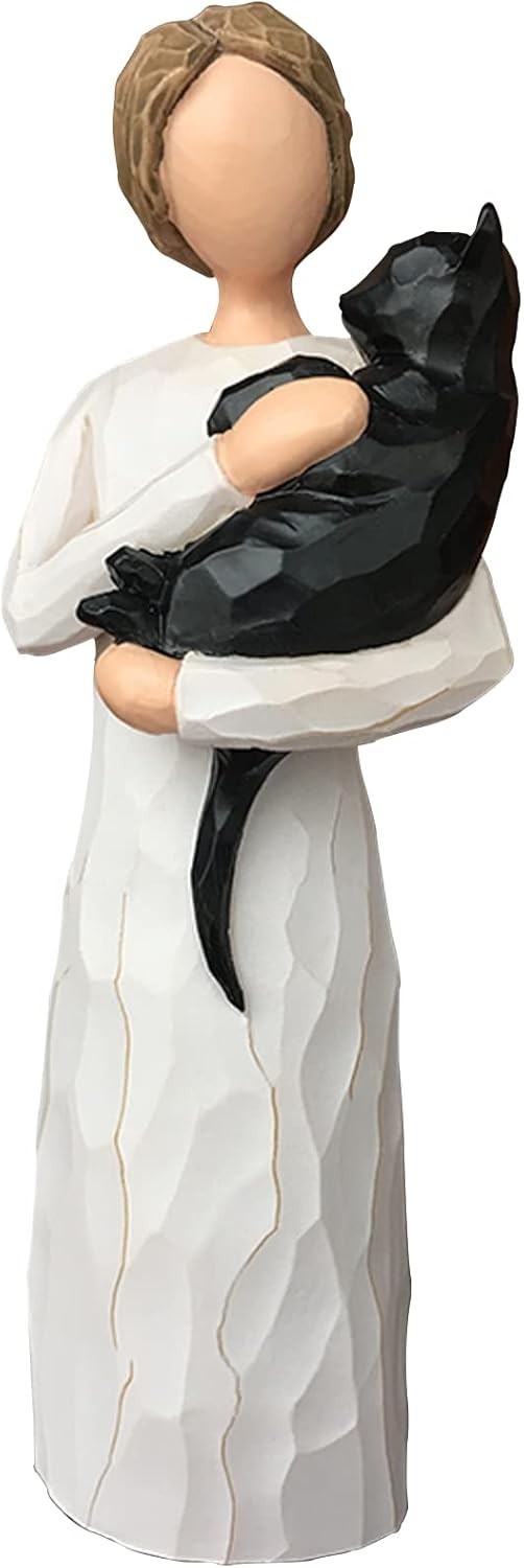 Compassionate Cat Loss Gift - 6 Black Cat Angel Figurine with Condolence Card