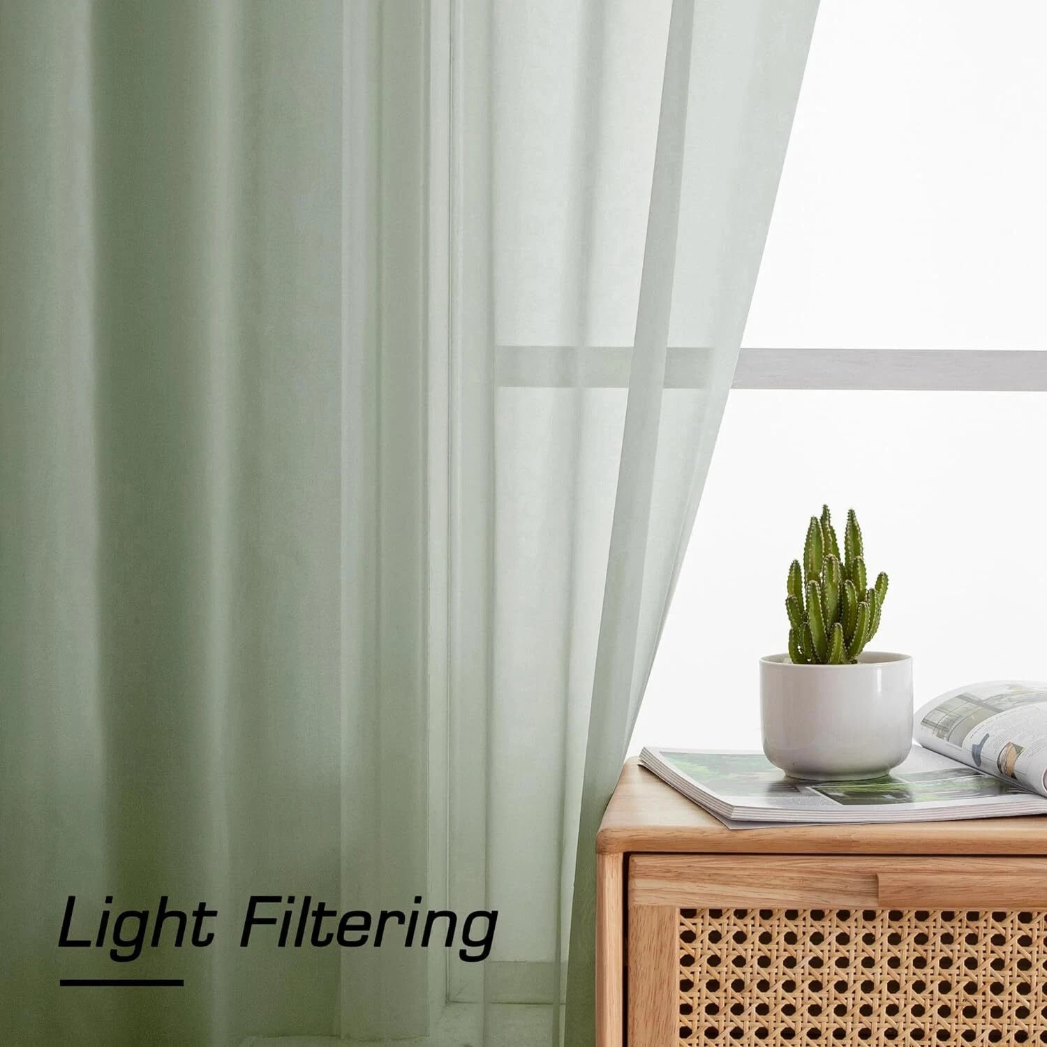 Simplebrand Sage Green Sheer Curtains 90 Inches Long 2 Panels Light Filtering...