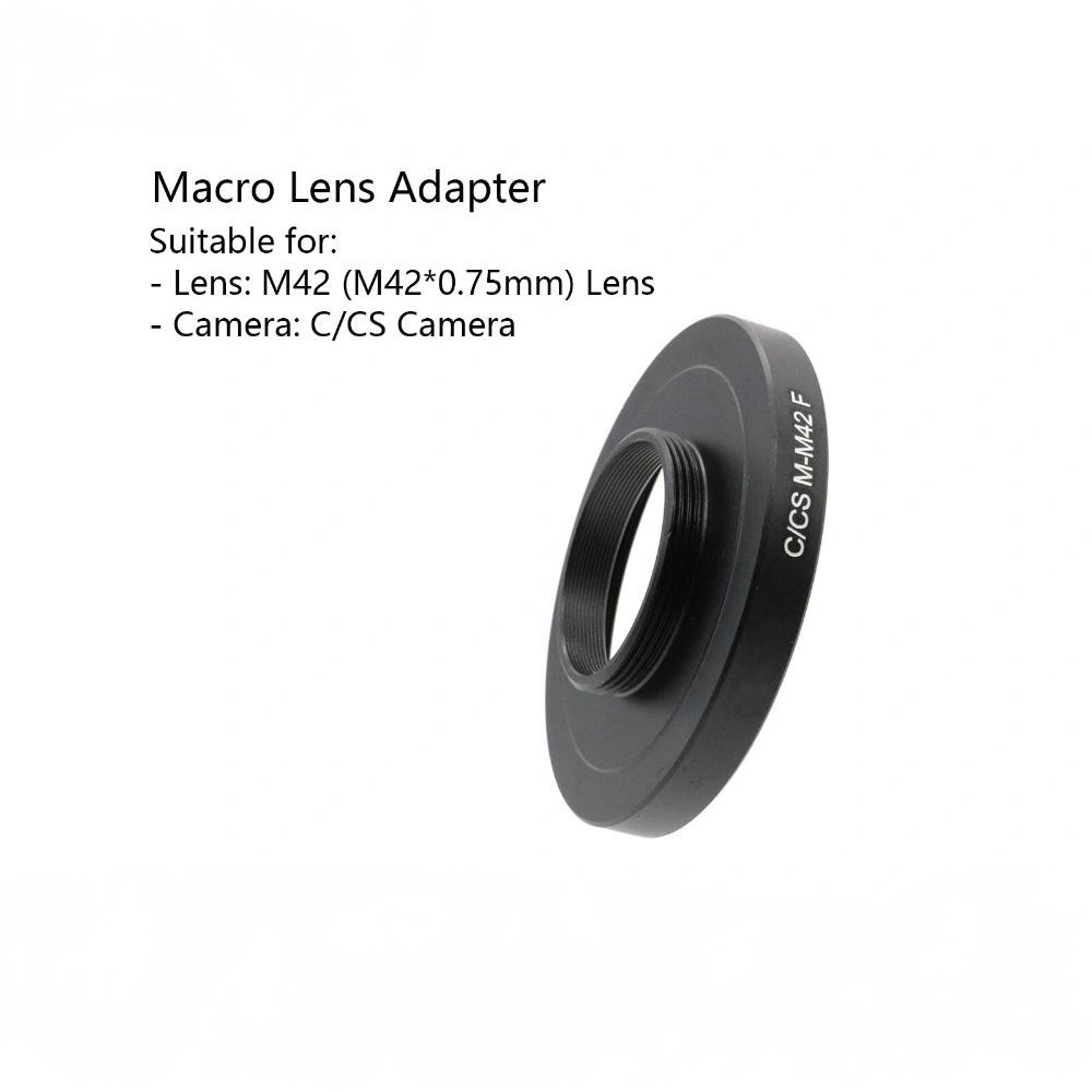 Macro Lens Adapter for M42 Screw Mount Lens to C/CS Camera, M42 0.75mm