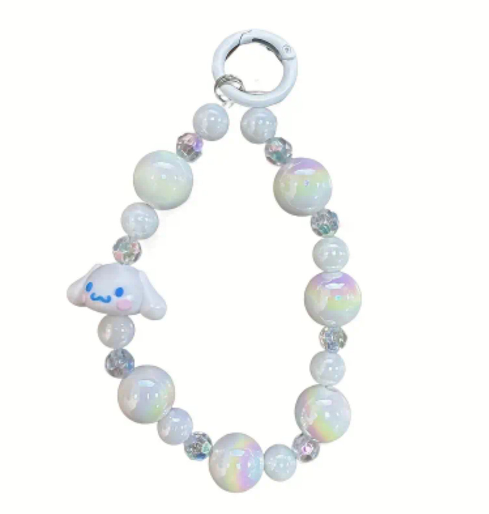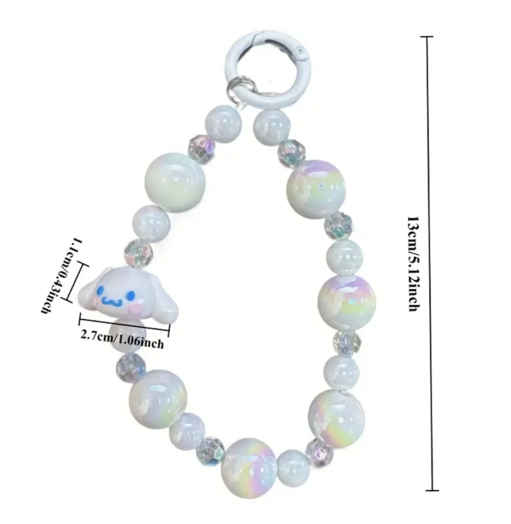 Glossy Sanrio, Kuromi, Melody Cinnamon Roll Beaded Phone Charm Strap Wristlet