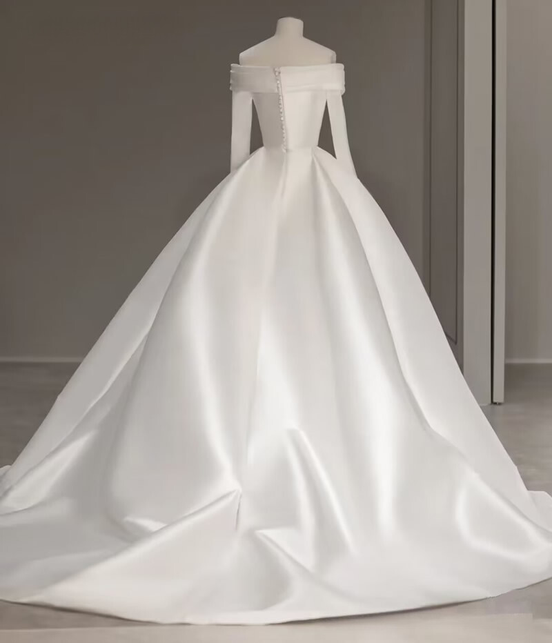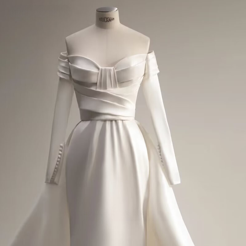 Newest Wedding Dress Mermaid Satin For Bride Boat Neck Neckline Long Sleeves