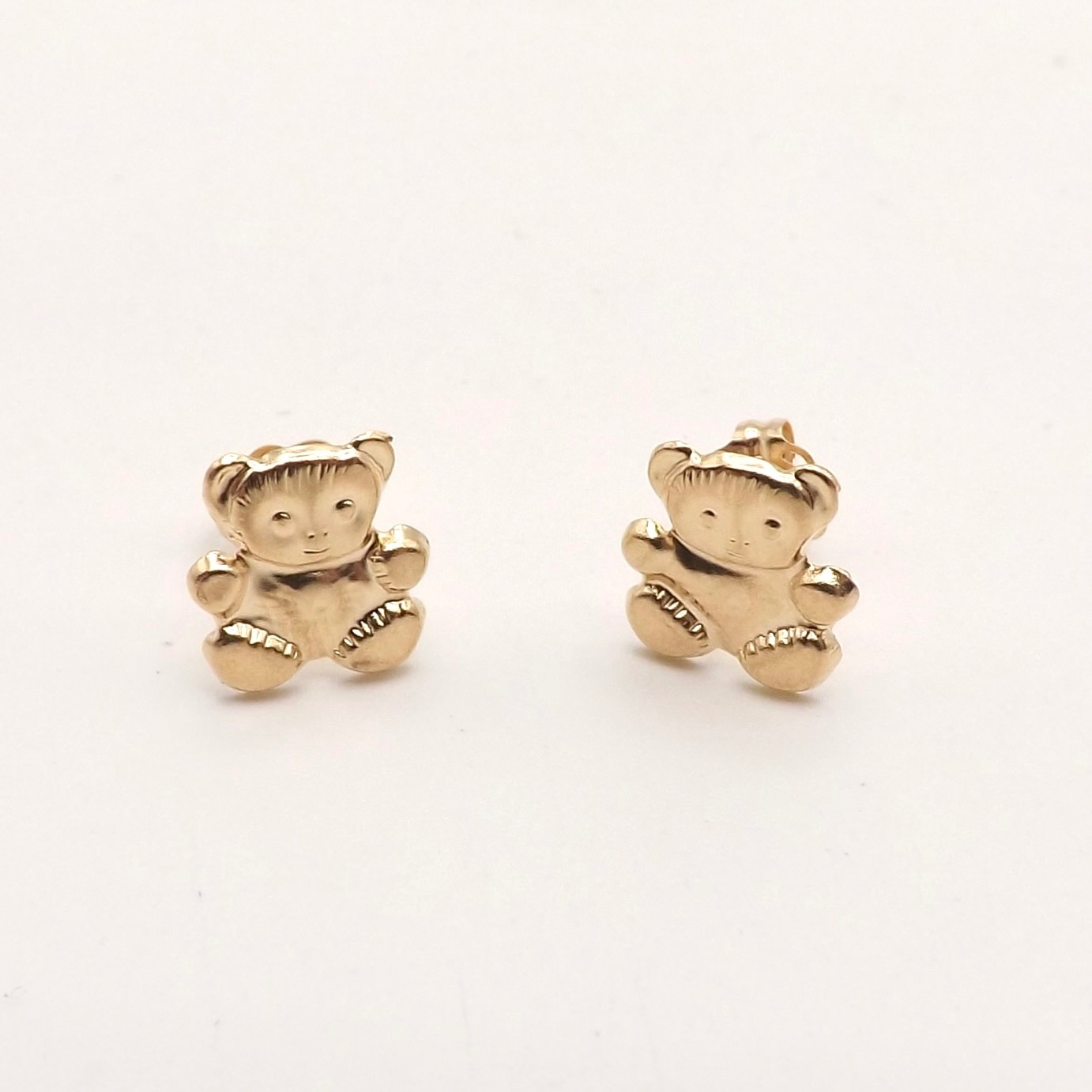 как выглядит Solid 14k Gold Teddy Bear Stud Earrings Child JCM Jacmel Mauritius New фото
