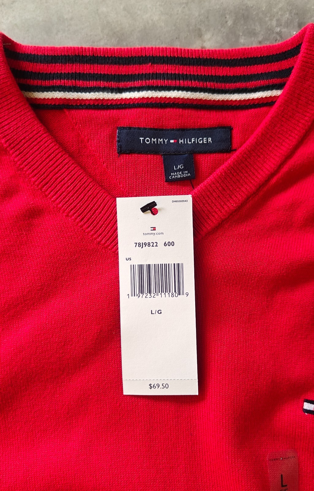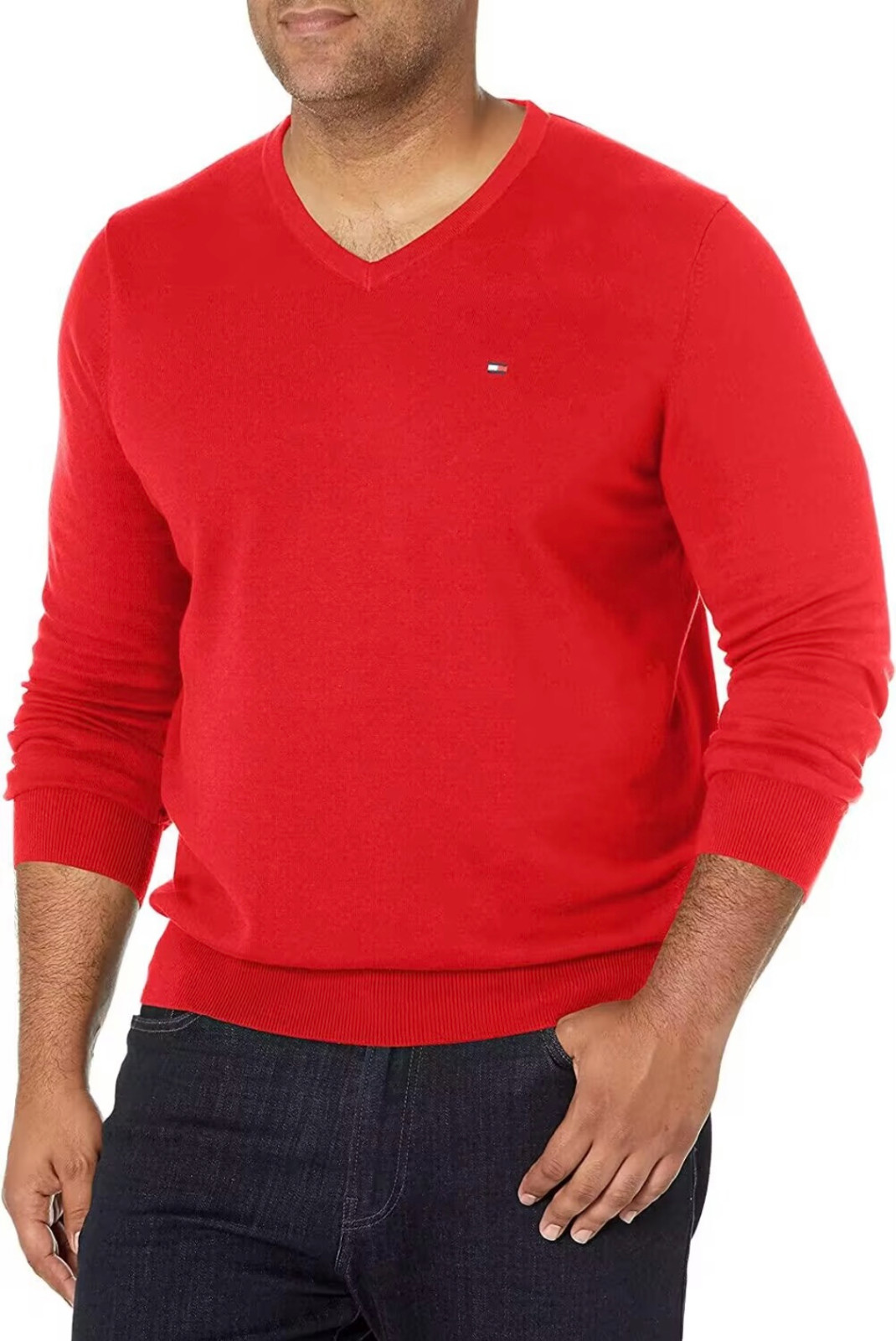 как выглядит NWT Tommy Hilfiger Mens Long Sleeve Cotton V-Neck Pullover Sweater Size M L фото