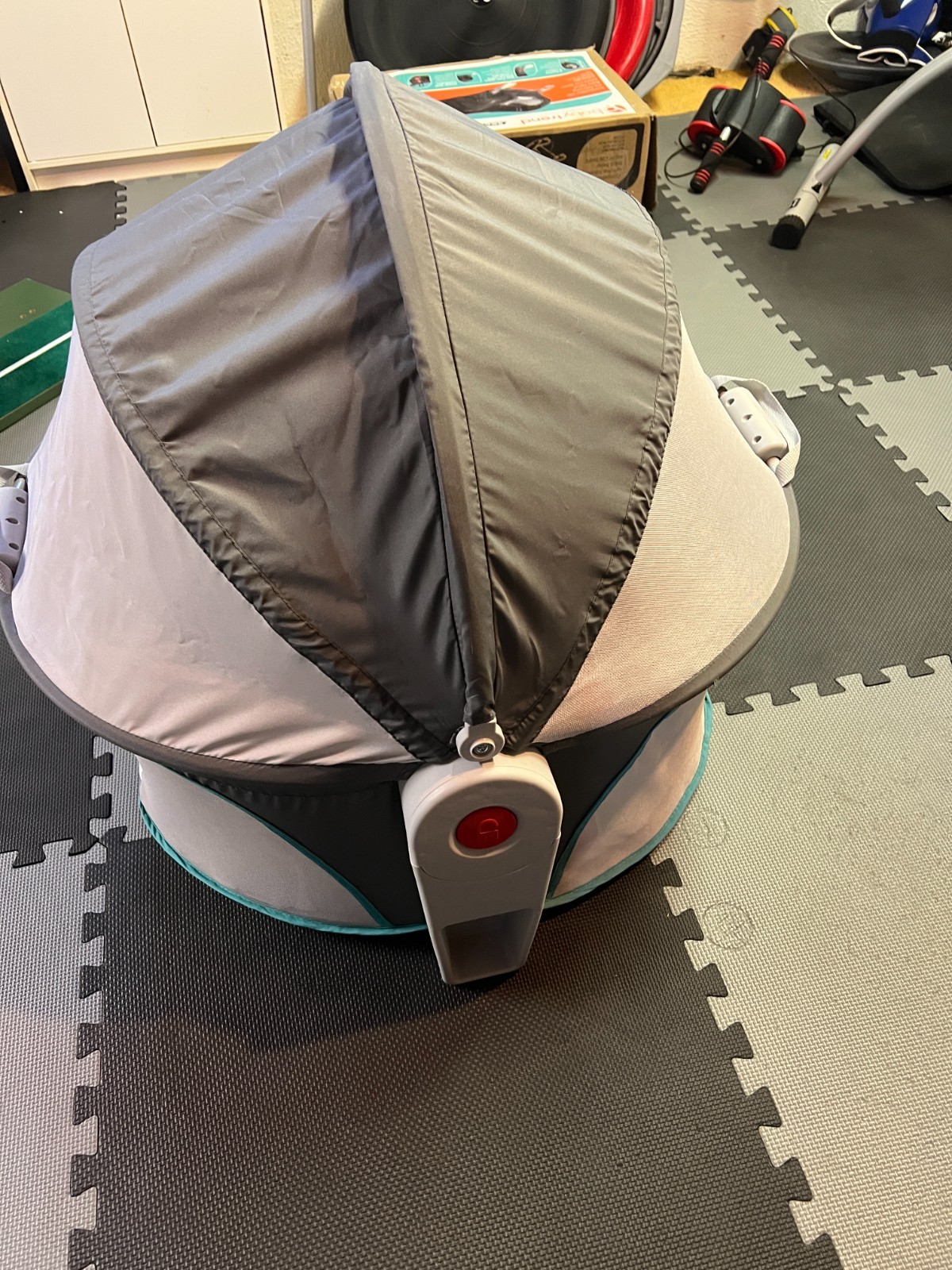 как выглядит Fisher-Price On-the-Go Baby Dome Portable Infant Bassinet w/ Toys Gray Teal фото