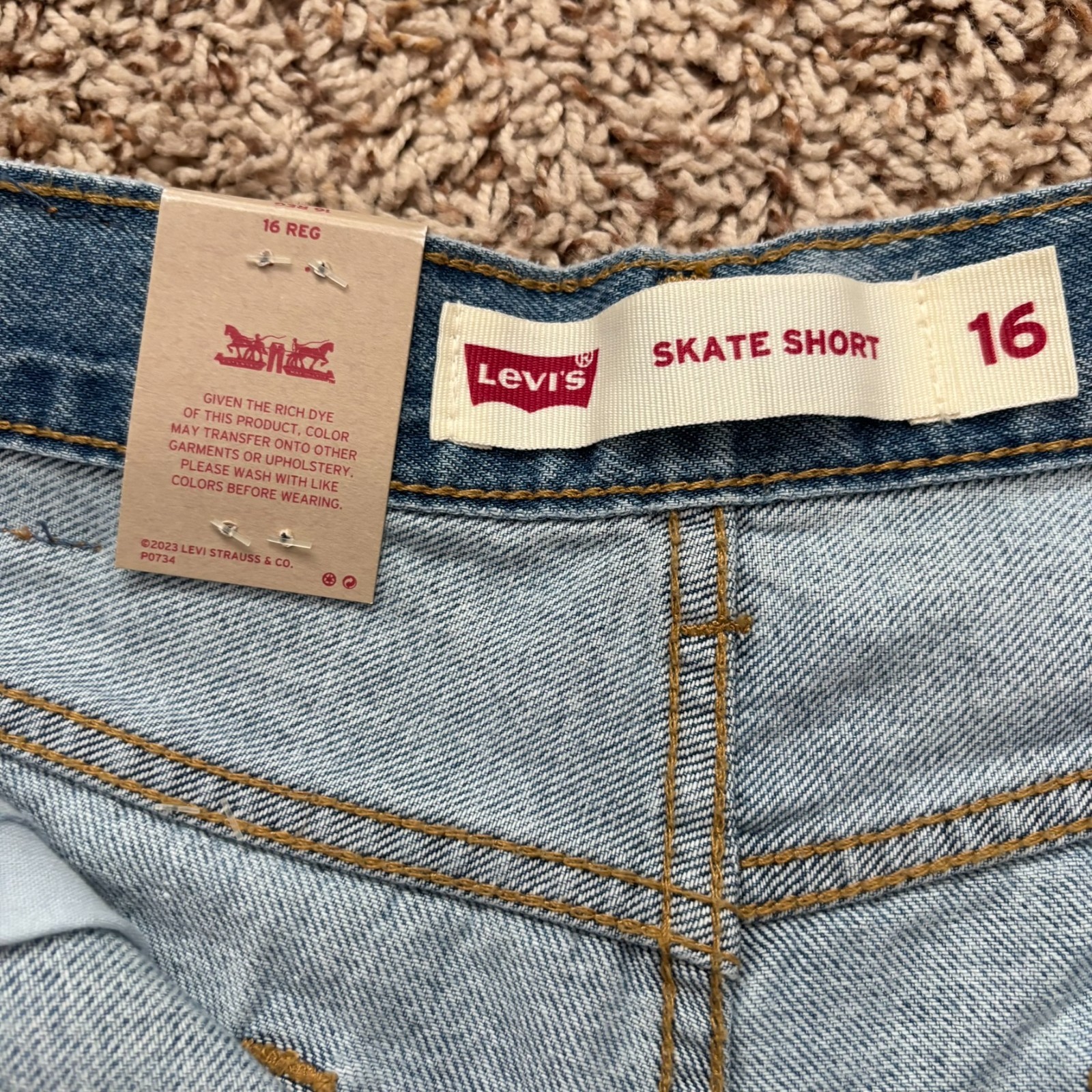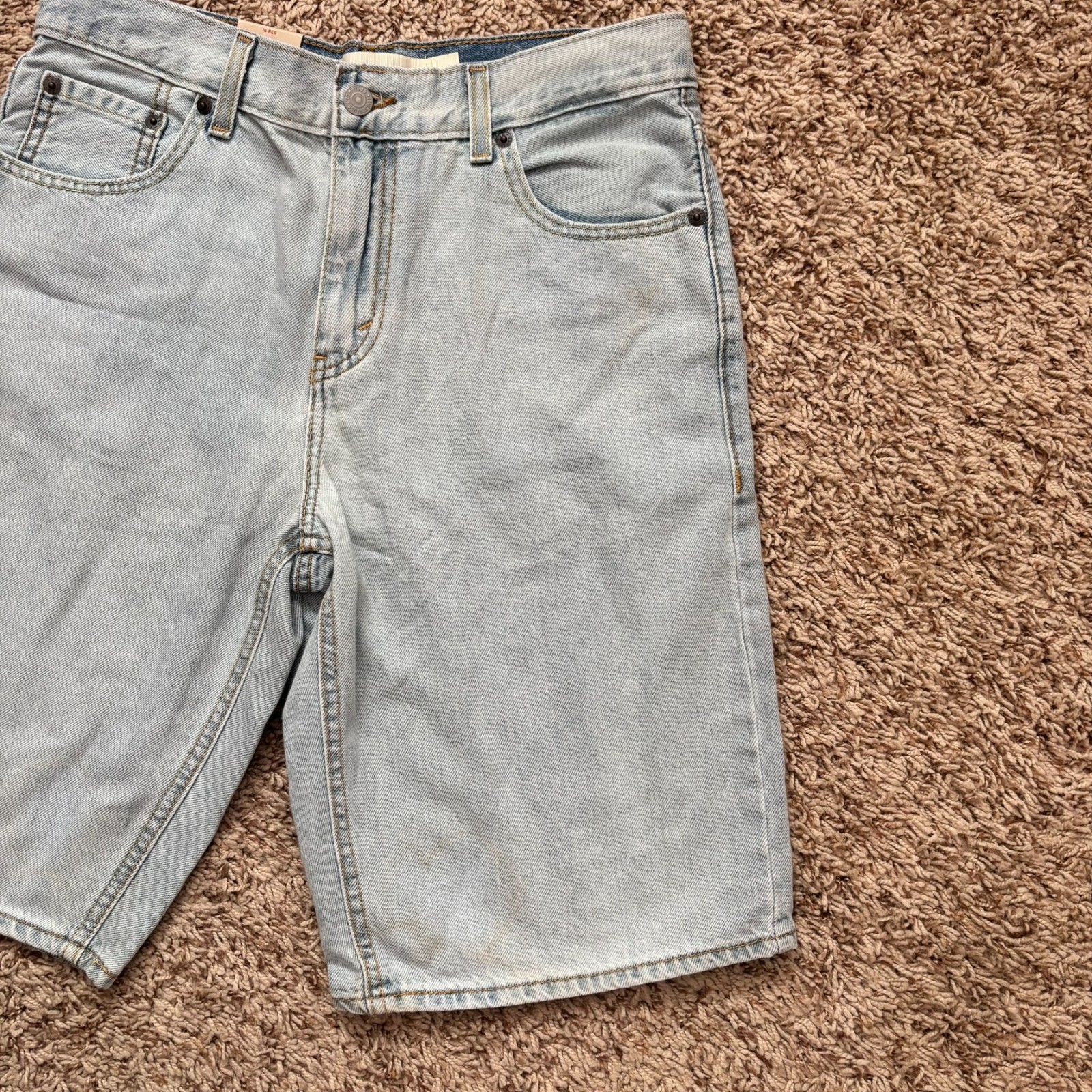 как выглядит Levis Skate Short Youth 16 Blue Denim NEW Loose Fit Adjustable Waistband Logo фото