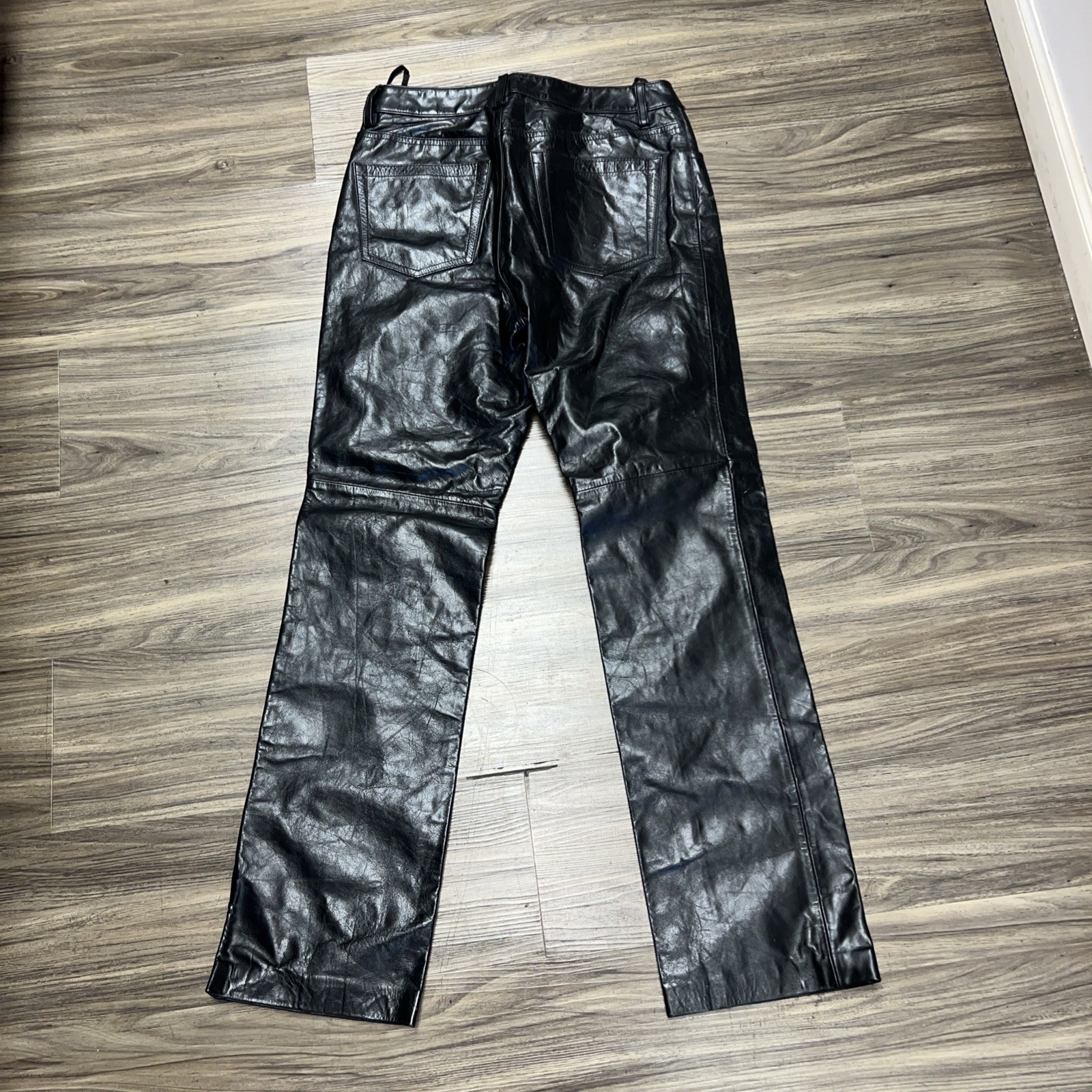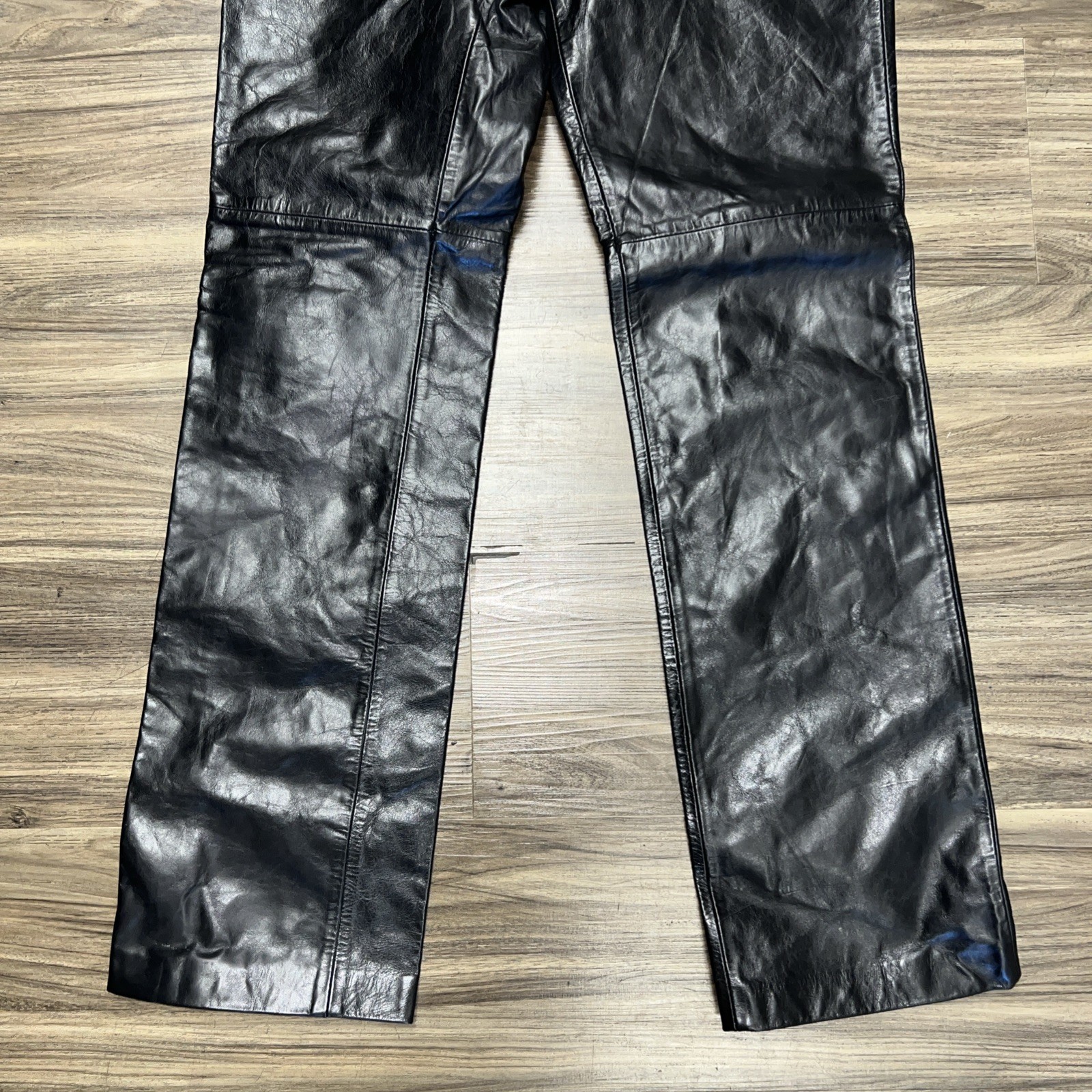 как выглядит Vintage Gap Leather Pants Womens 8 Black Bootcut Y2K Biker Motorcycle Rock Party фото