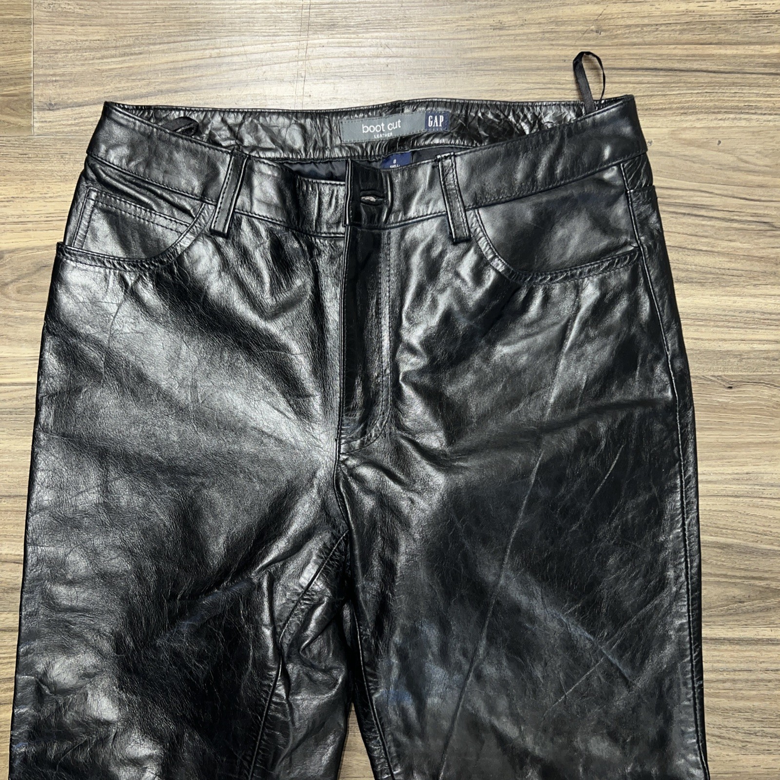 Vintage Gap Leather Pants Womens 8 Black Bootcut Y2K Biker Motorcycle Rock Party