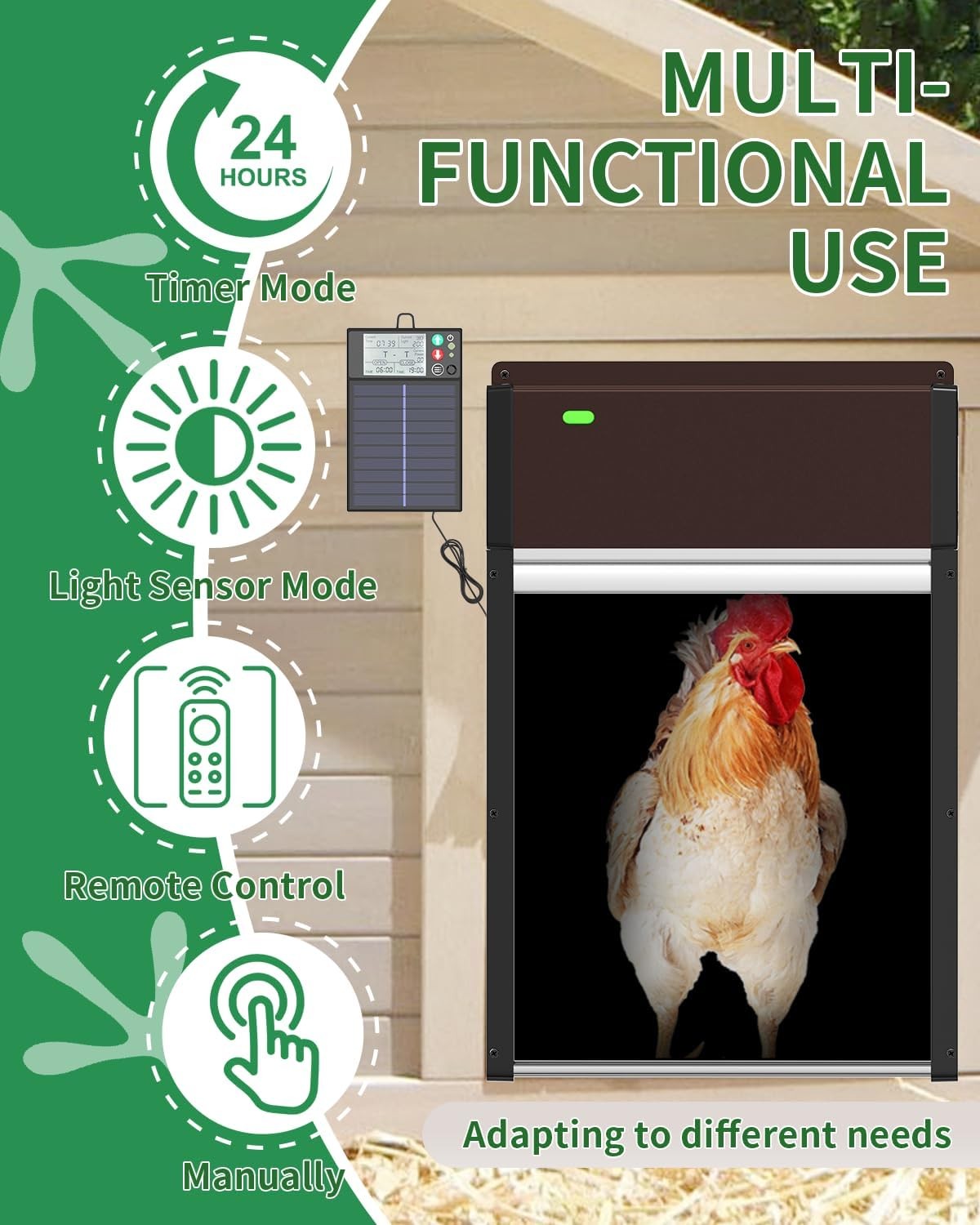 Automatic-Chicken-Coop-Door-Solar-Powered Auto Chicken Door Remote Light Sensor