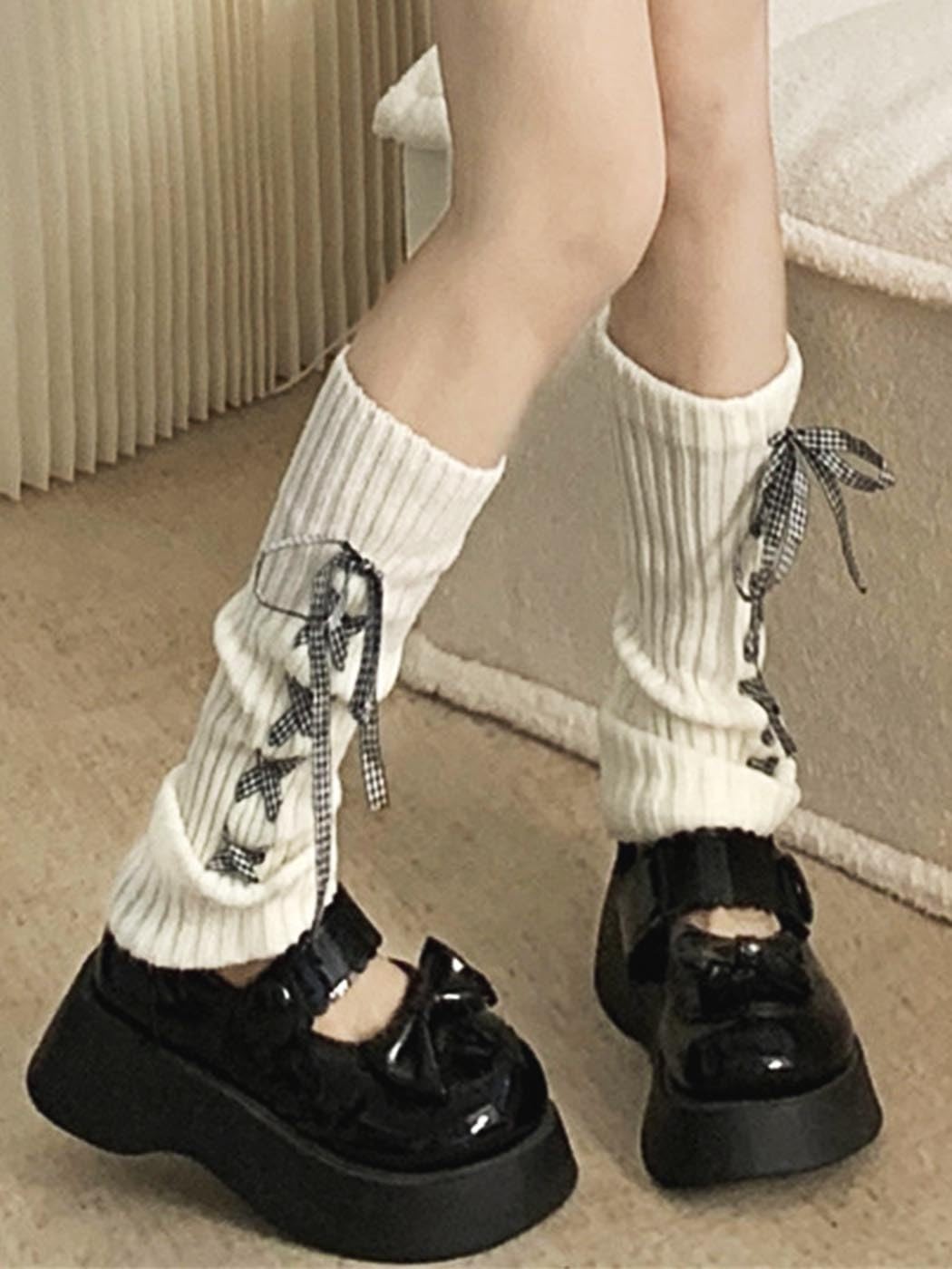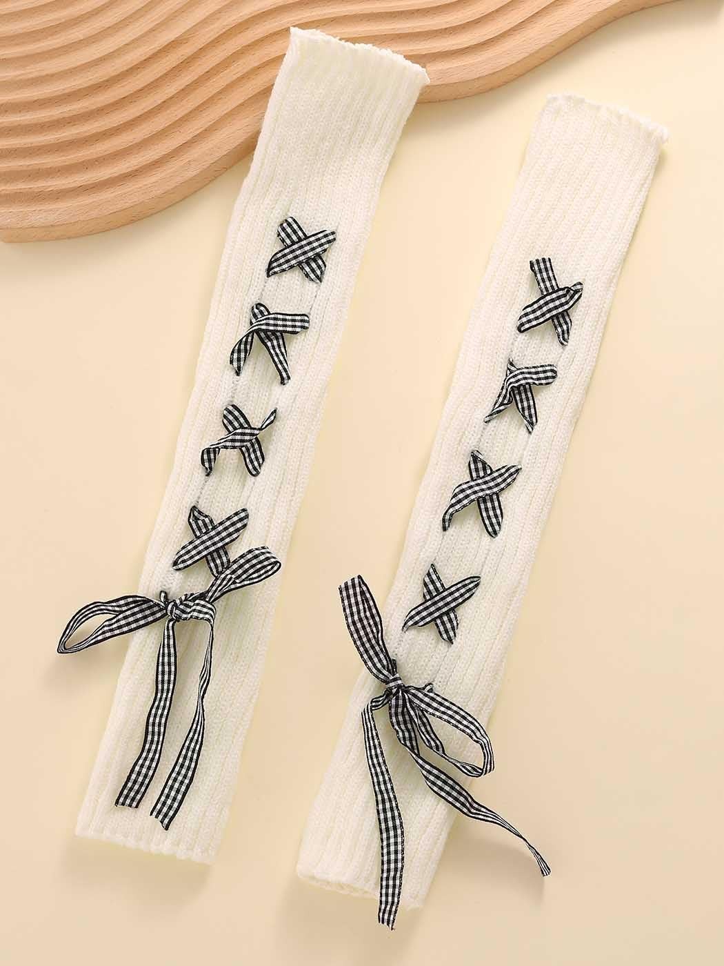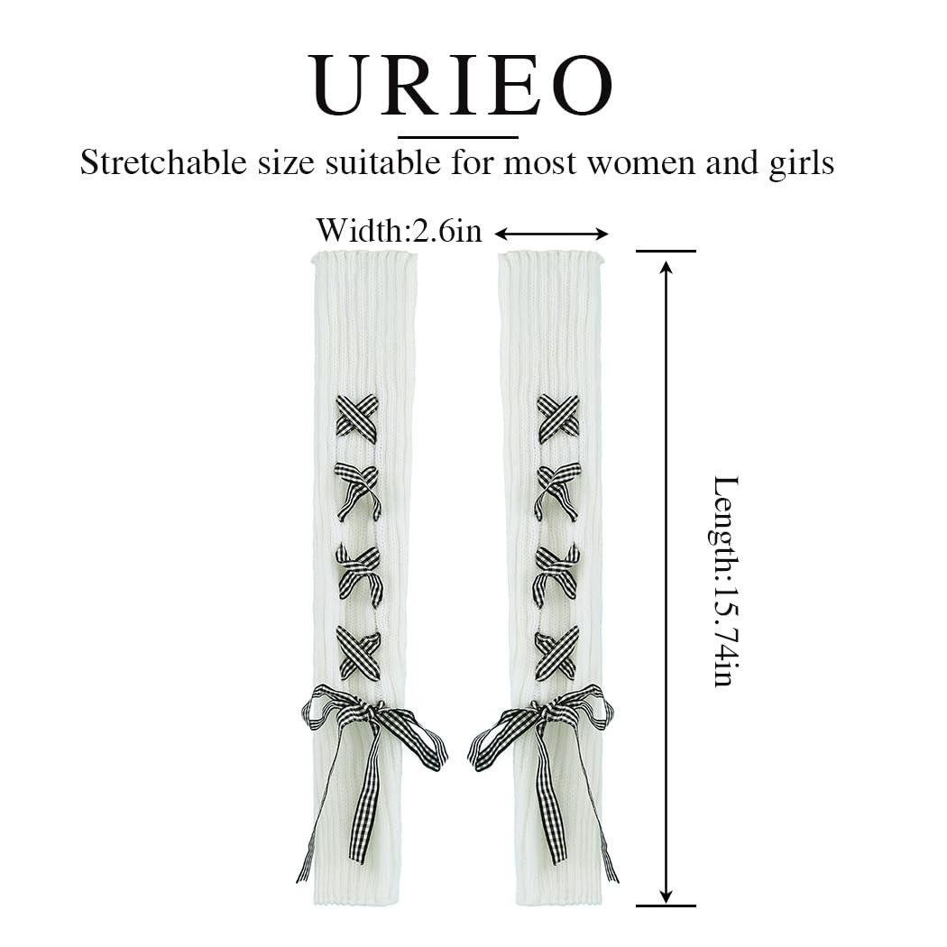 White Leg Warmers Lace up Kawaii Footless Socks Winter Knit Leg Sleeves for W...