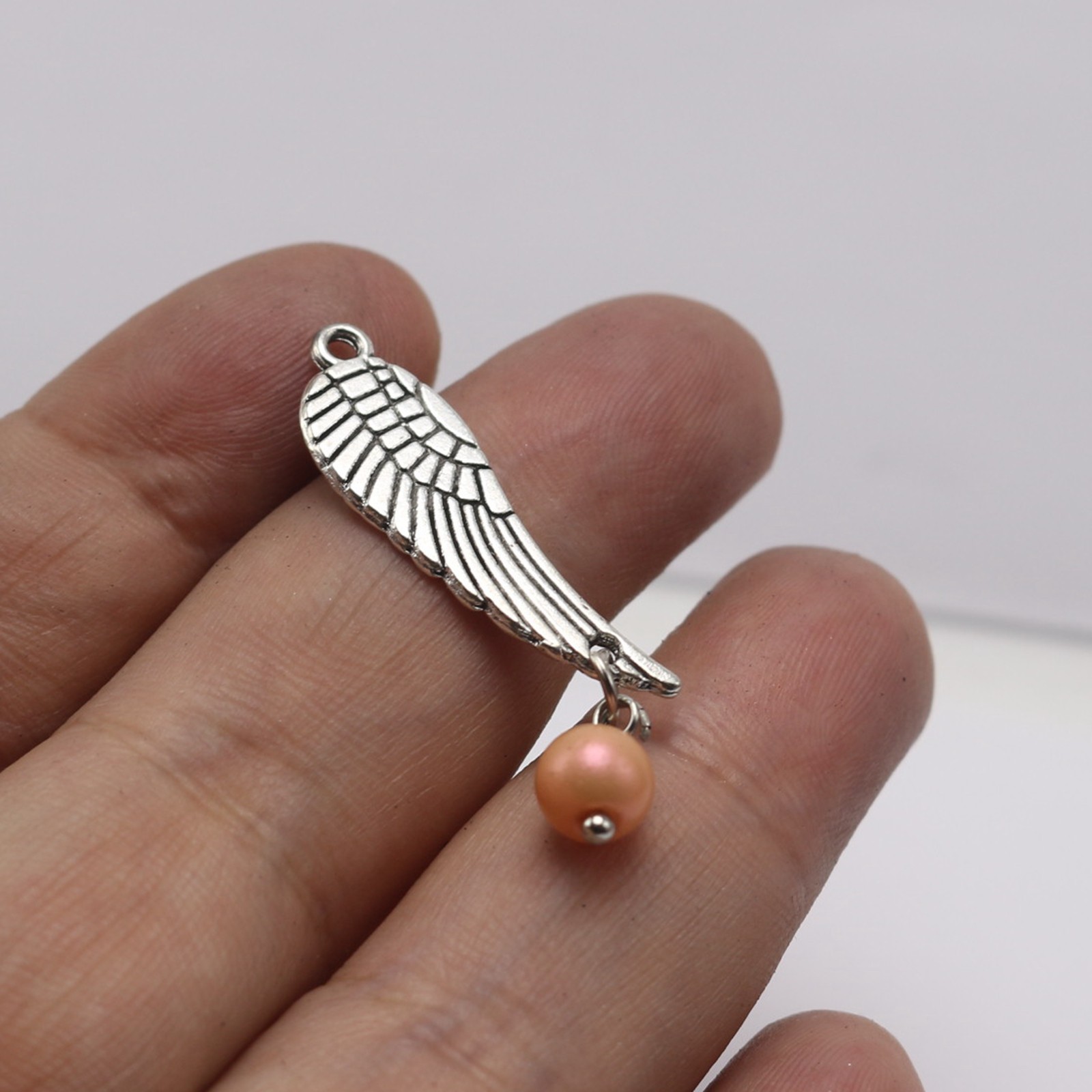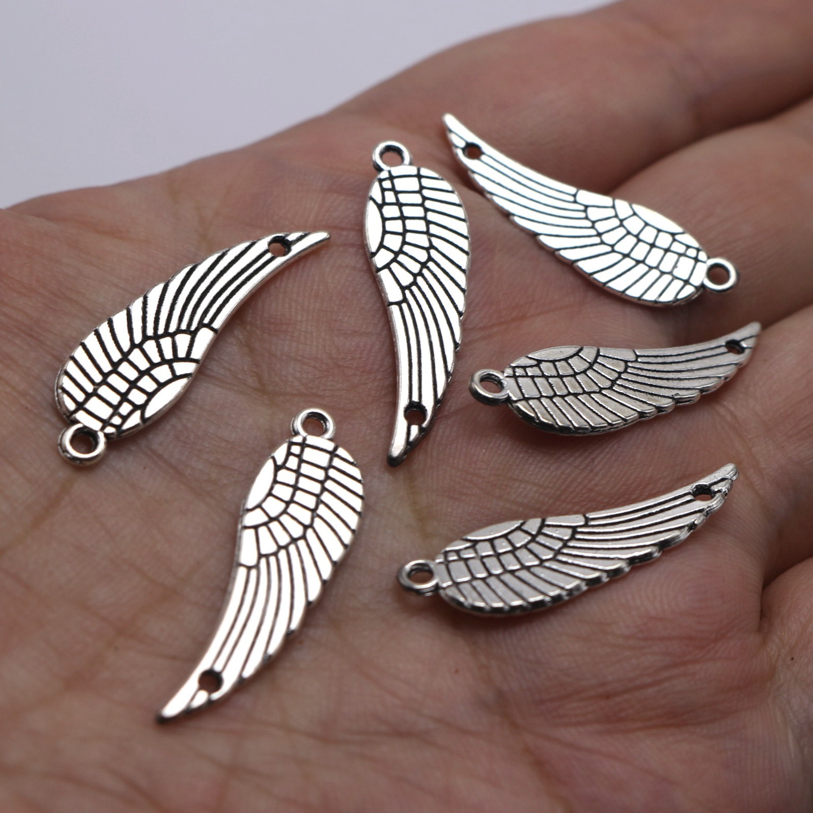 36 Tibet Silver Tone Alloy Angel Feather Wing Pendants 10X31mm Connector Charms