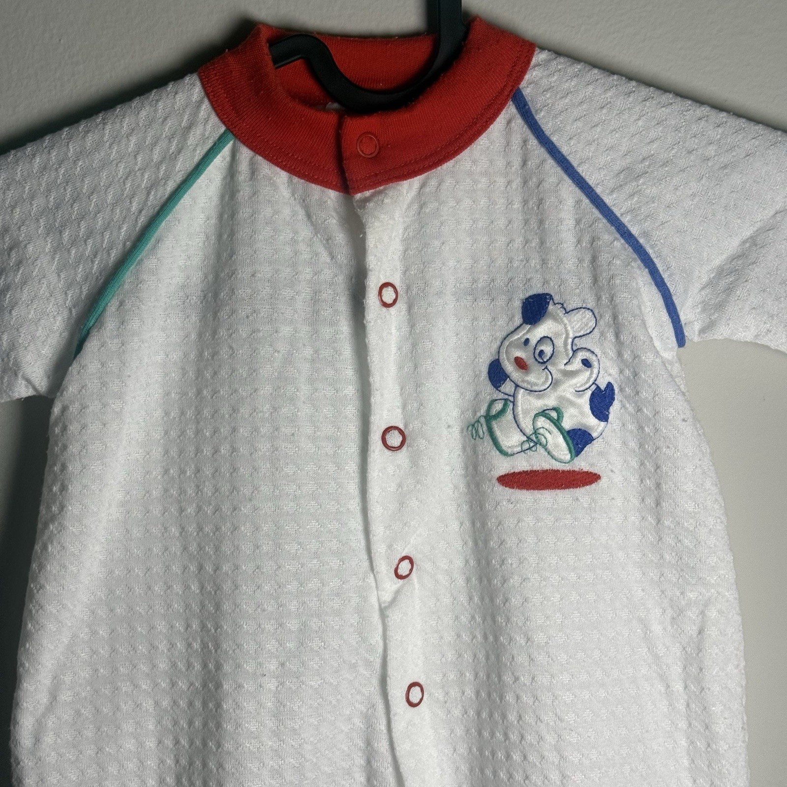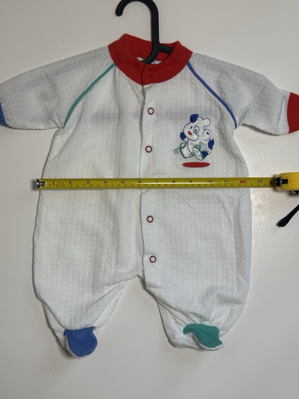как выглядит Vintage BabyGro Infant Sleeper Small White Red Trim Color Block Feet Made in USA фото