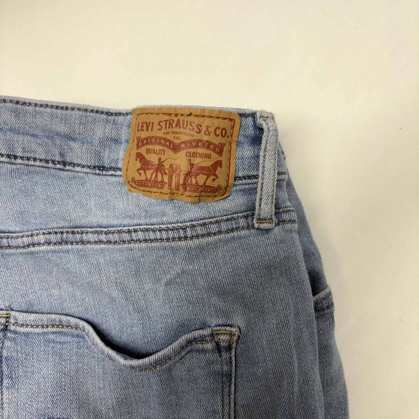 Levi s 721 High Rise Skinny Light Wash Blue Distressed Denim Jeans Women s 33
