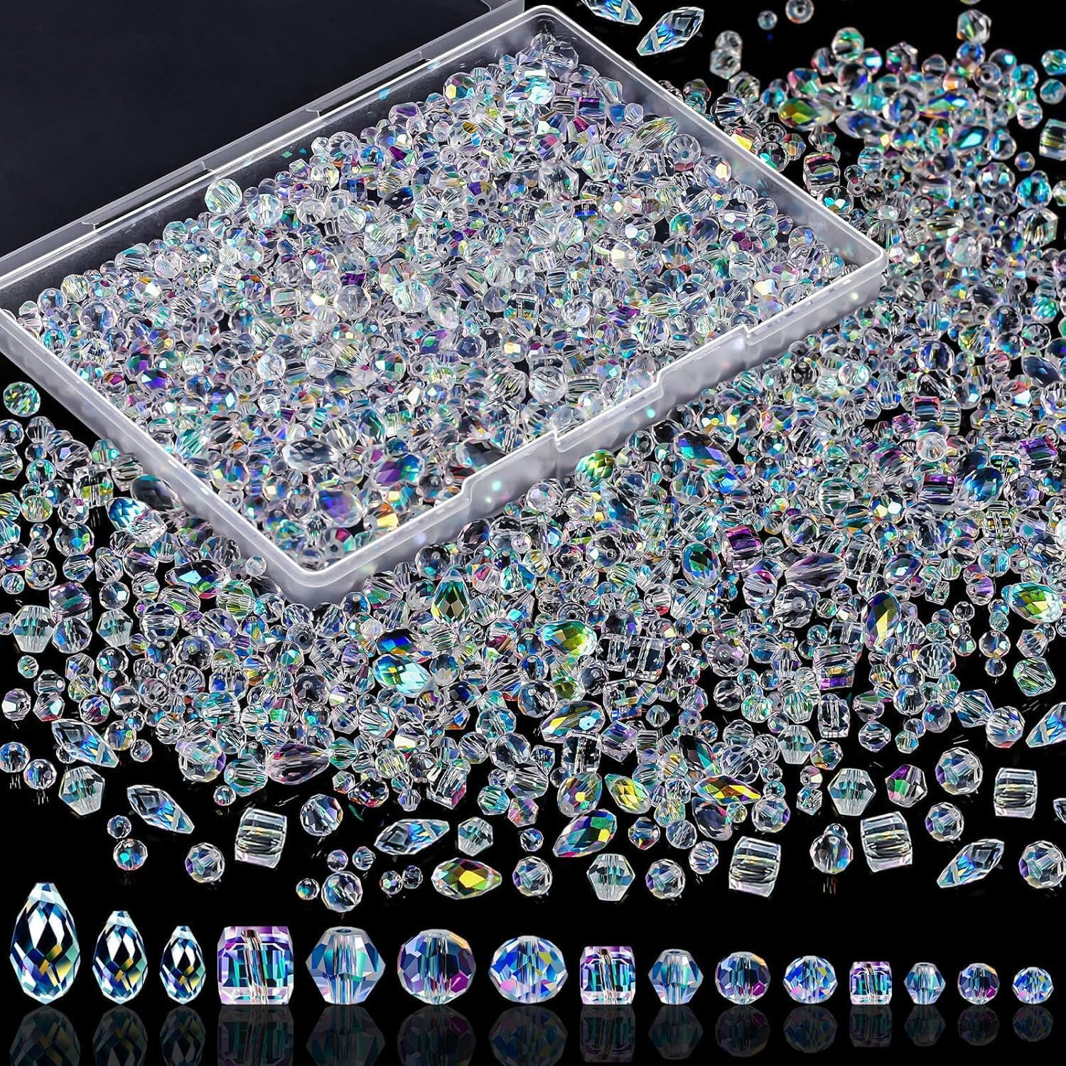 Crystal Beads, 800 Pcs Crystal Glass Beads Bulk, Clear Crystal Beads for Jewe...