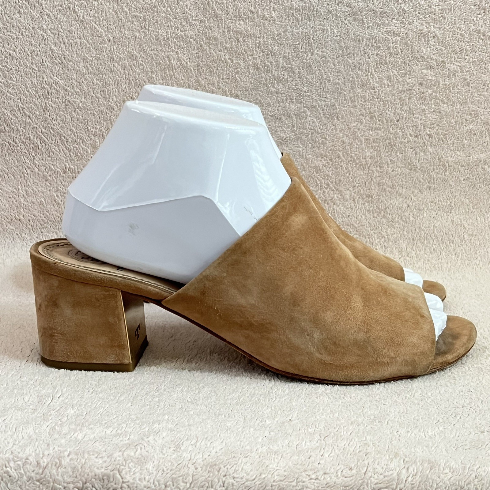 как выглядит Tory Burch Salinas Suede Block Heel Mules Slides-Tan-Women s 8-Designer-Classic фото