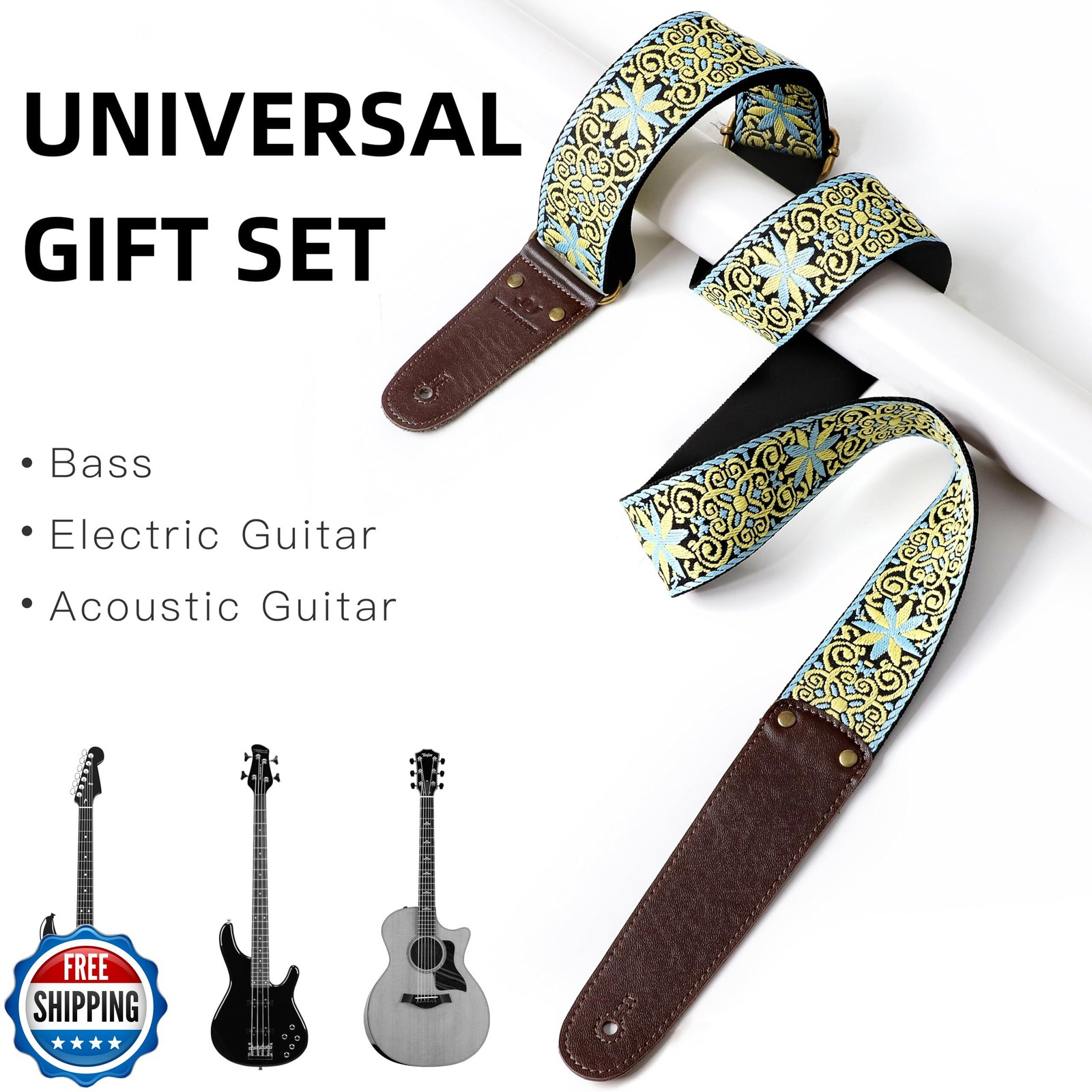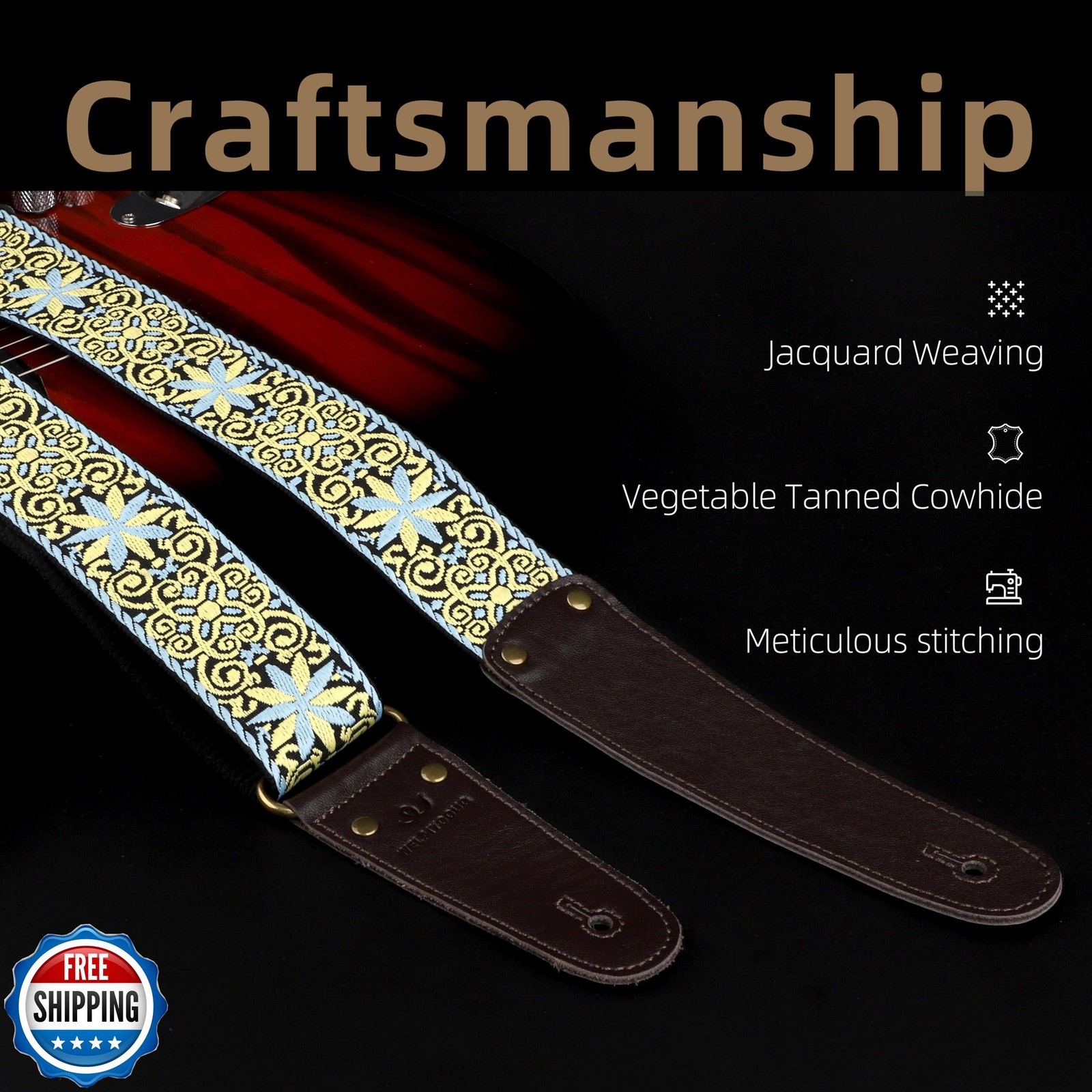 WELAIYOOUQ Guitar Strap, Embroidered Cotton Guitar Straps, Double Sided Leath