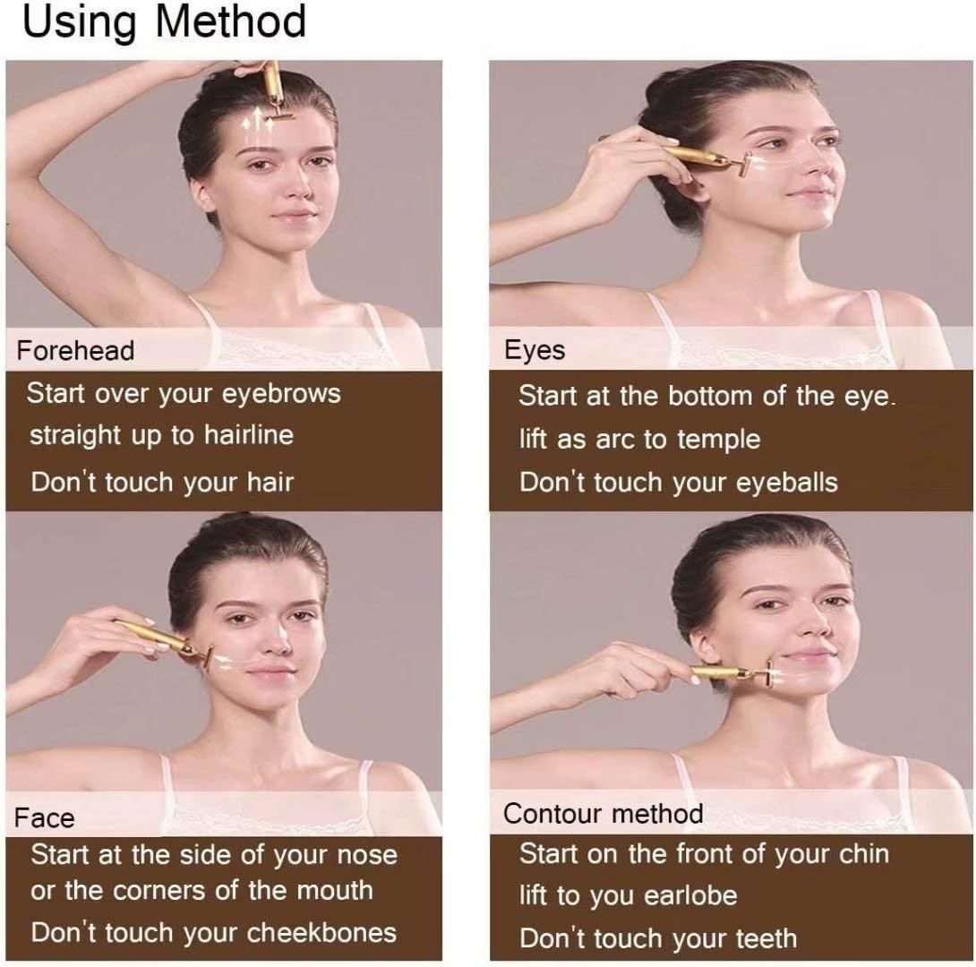 Beauty Bar 24K Gold Skin Care Face Massager Roller, 2 in 1 Electric 3D Roller an